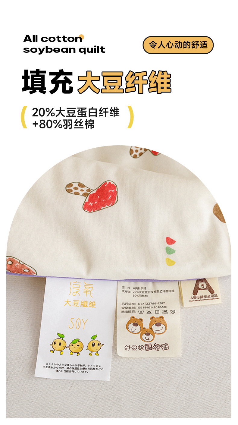 商品名称:优被业 2024新款针织棉大豆纤维被 多彩蘑菇