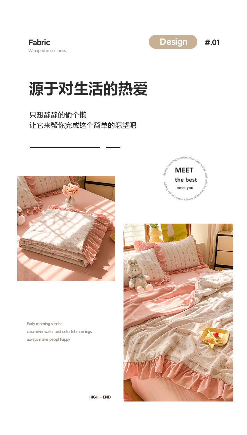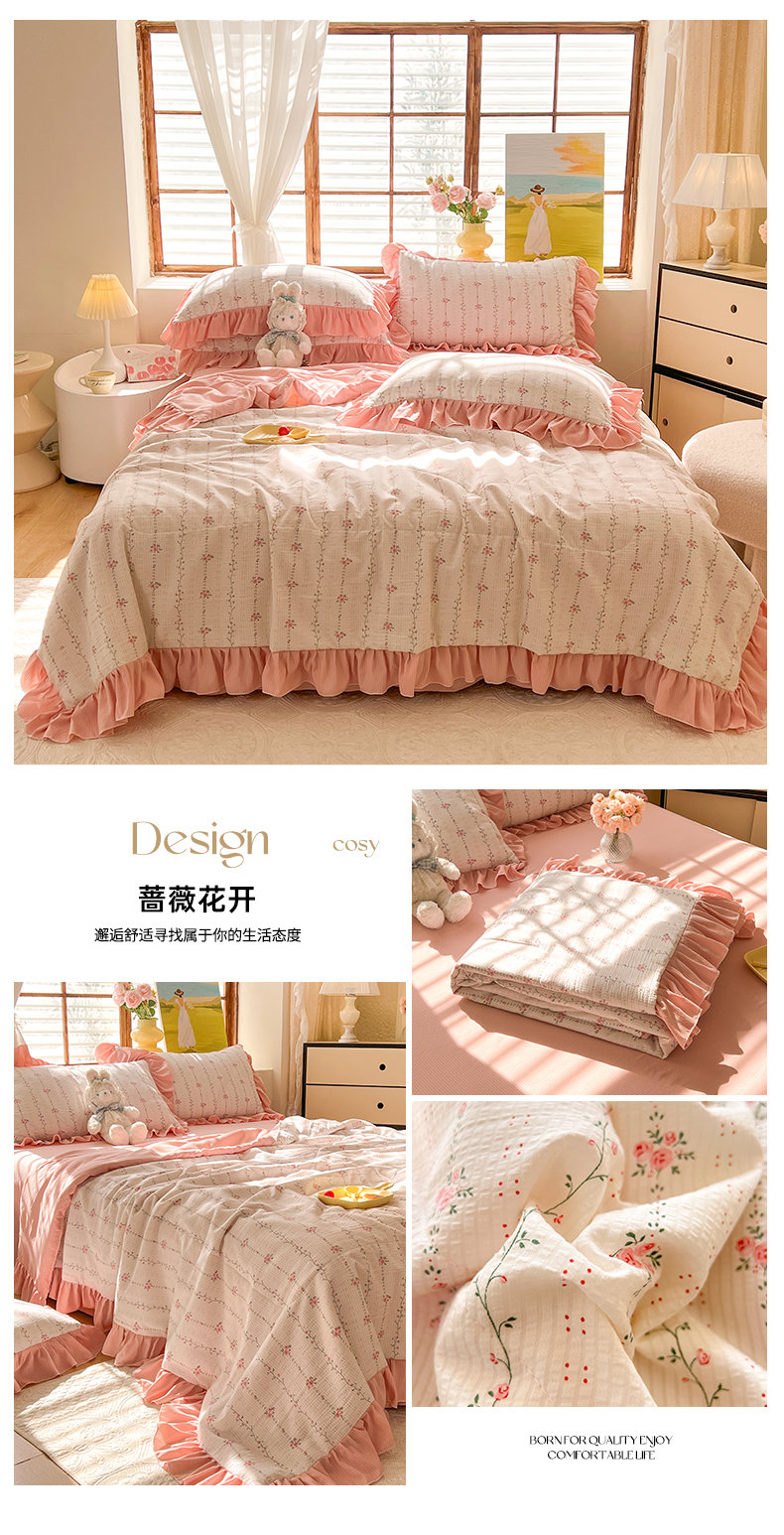 慕梵 2024新款泡泡棉夏被四件套 蔷薇花开