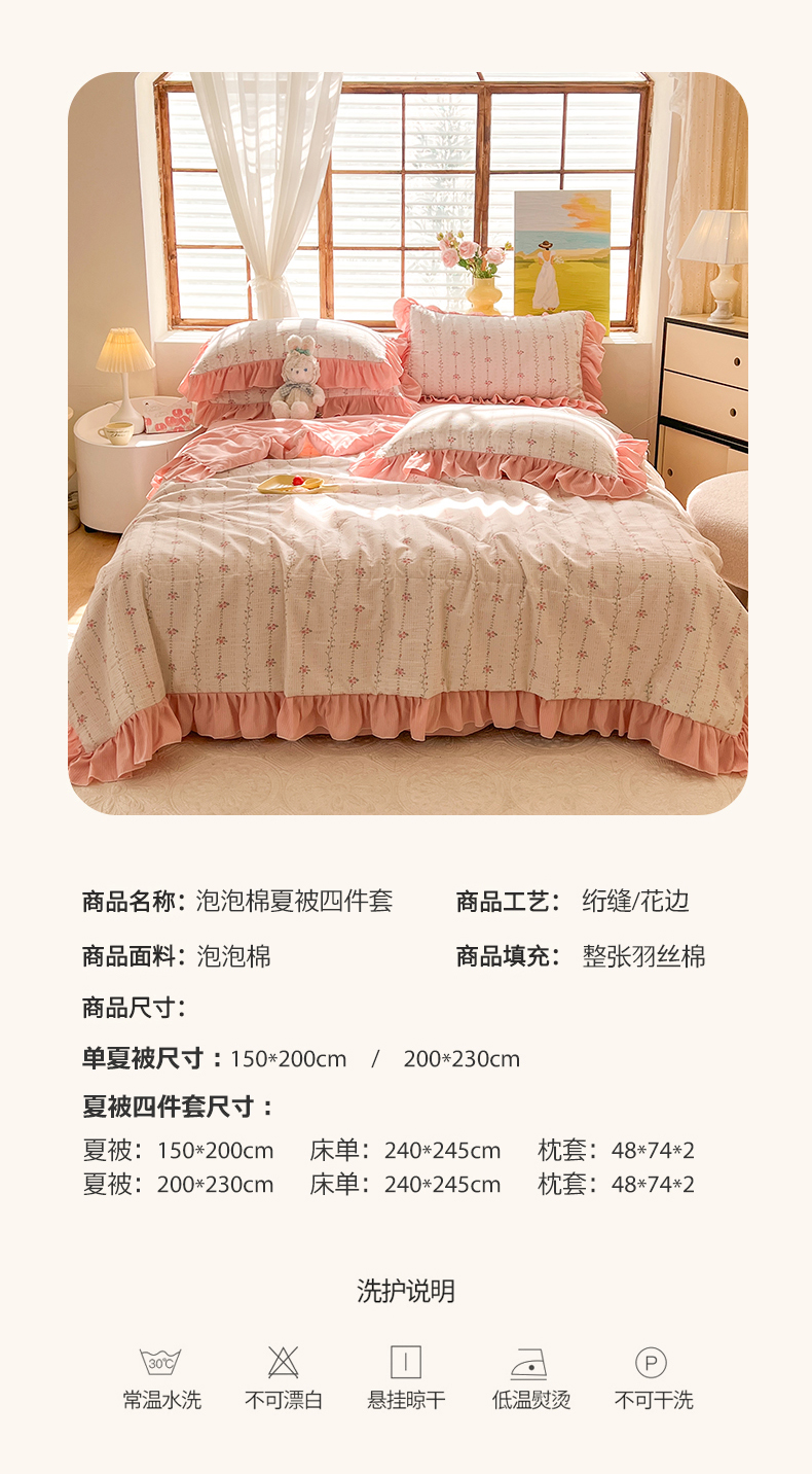商品名称:慕梵 2024新款泡泡棉夏被四件套 蔷薇花开
