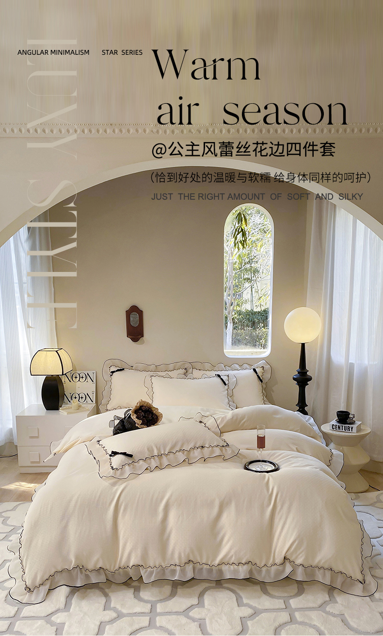(总) 庭笙 新款公主风蕾丝花边羊绒剪花四件套-艾莉亚