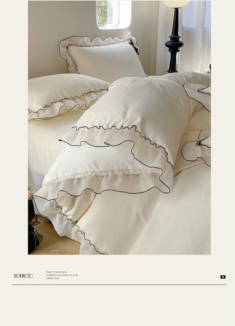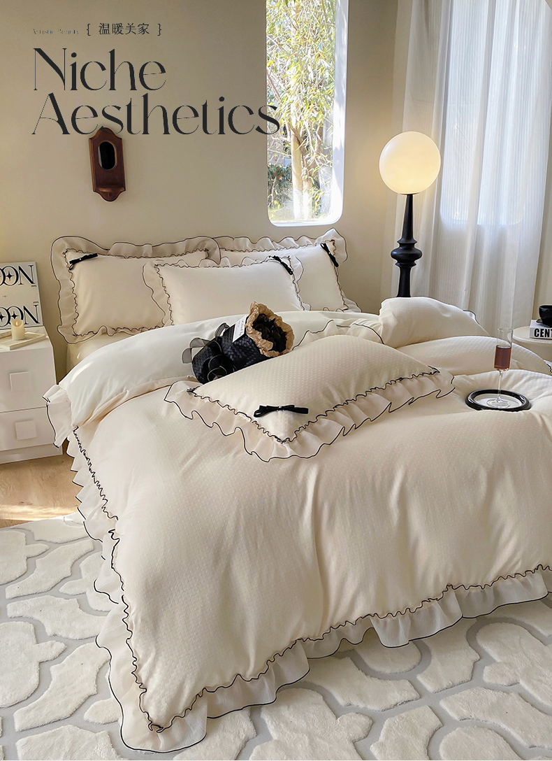(总)庭笙 2025新款法式刺绣花边双层蕾丝裙边梦幻纱四件套-漫调小城,米白,浅粉