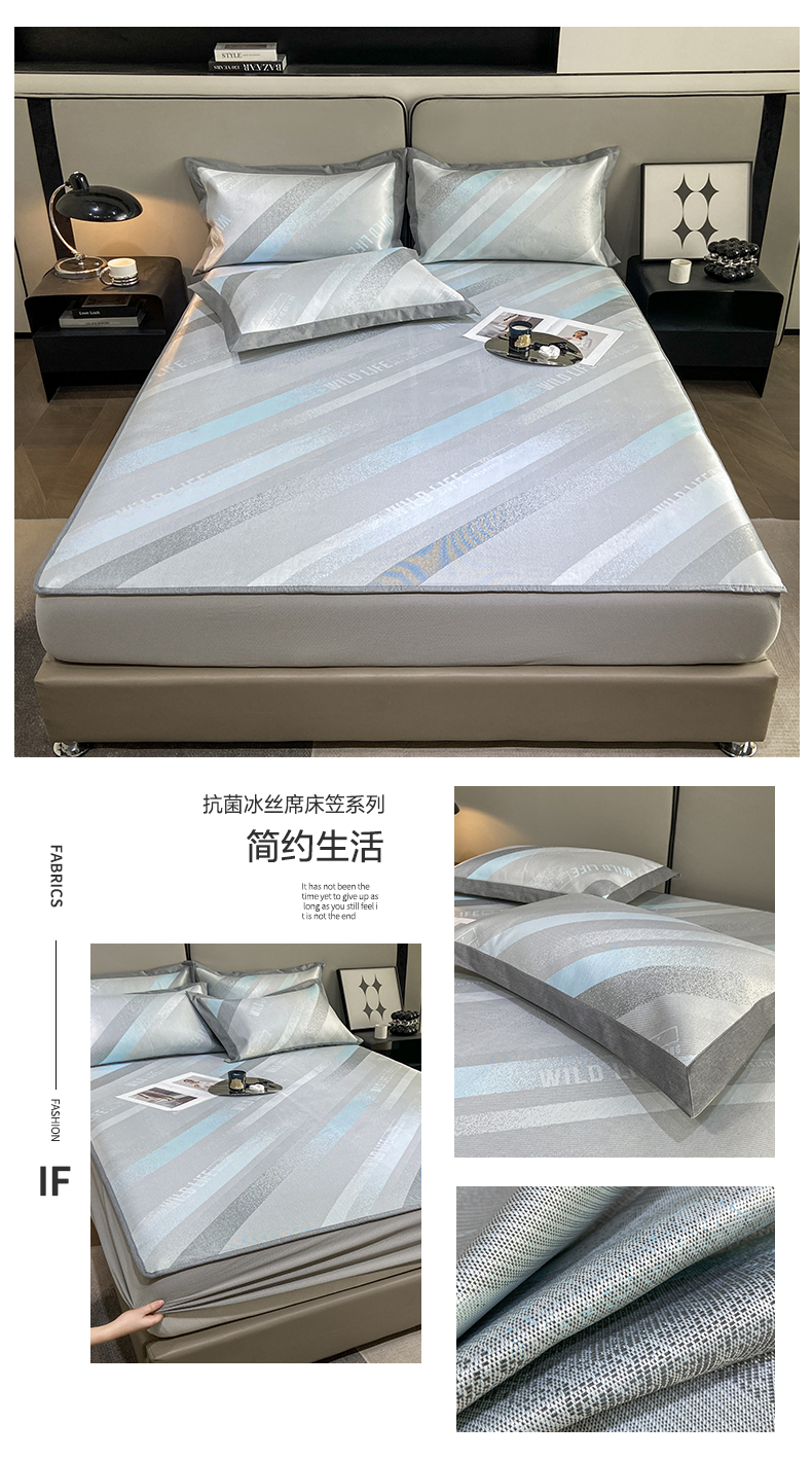 商品名称:由有2024升级款A类抗菌高精密色织提花可水洗冰丝凉席三件套/床笠款 简约生活