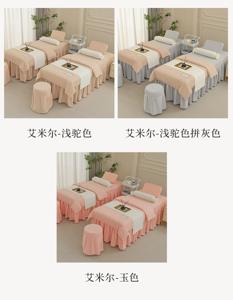 (总)不打烊家纺 (原春恩家纺) 2025新款贡棉美容床罩系列套件-艾米尔,艾米尔米白色,艾米尔米白色拼灰色,艾米尔米白色拼绿色,艾米尔米白色拼驼色,艾米尔米白色拼玉色