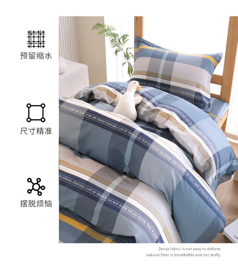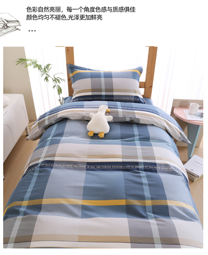 当前位置: 91家纺网 > 商品网购 > 床品套件 > 三件套 > 凯森2024新款斜纹加厚全棉三件套寝室学生床笠上下铺床三件套 卡乐-蓝