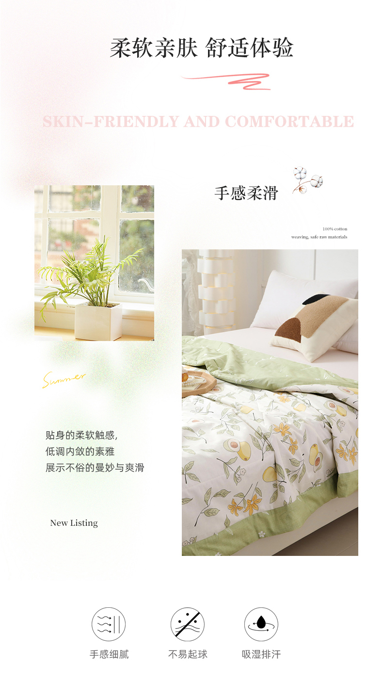 商品名称:瑜珠 2025新款双面全棉印花夏被夏凉被空调被子 丹果飘香
