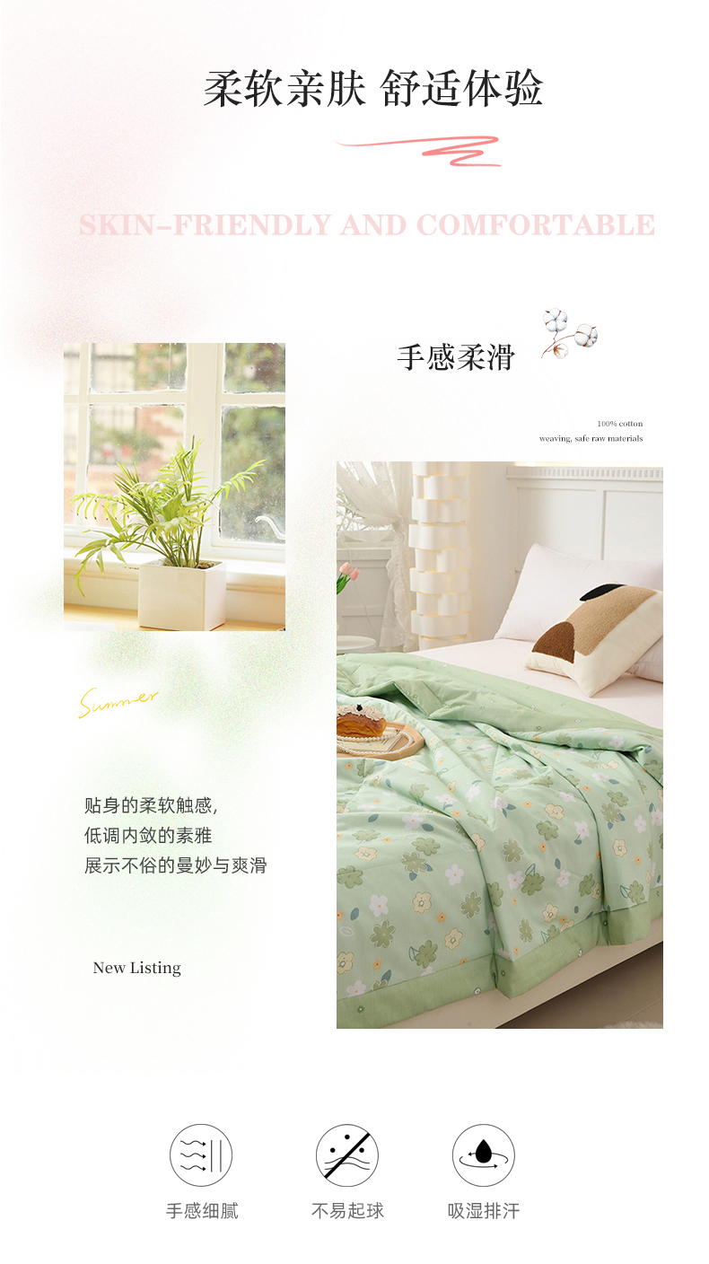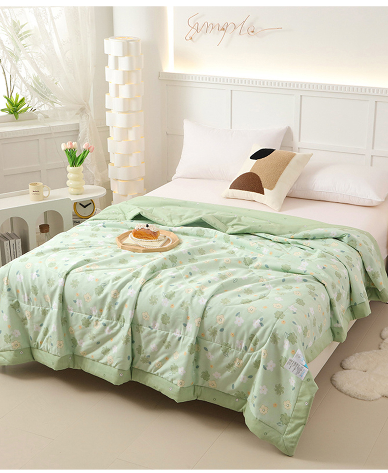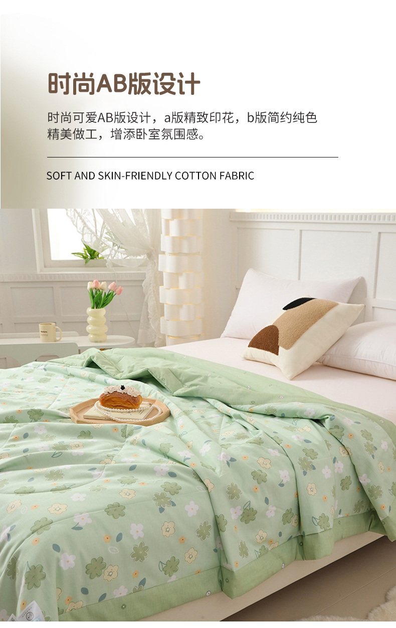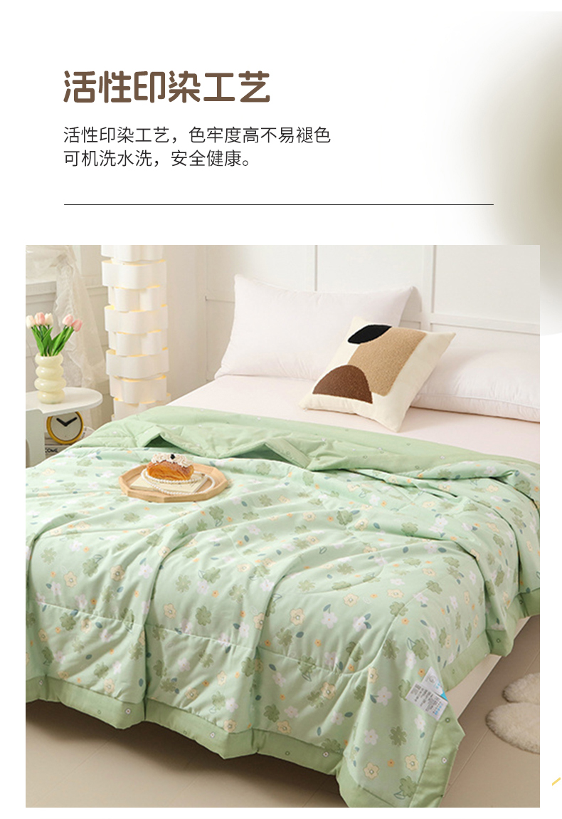 商品名称:瑜珠 2025新款双面全棉印花夏被夏凉被空调被子 欧若琳绿