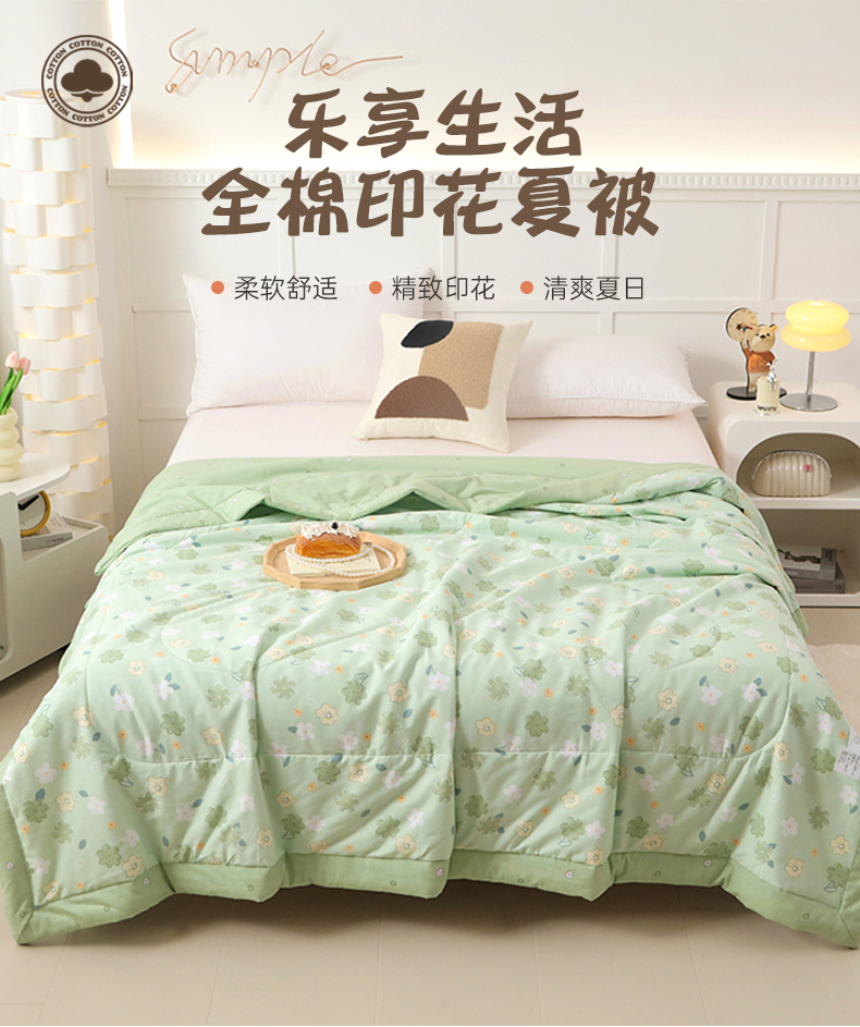 瑜珠家纺 2025新款里外全棉棉花夏被 青柠薄荷,青柠薄荷