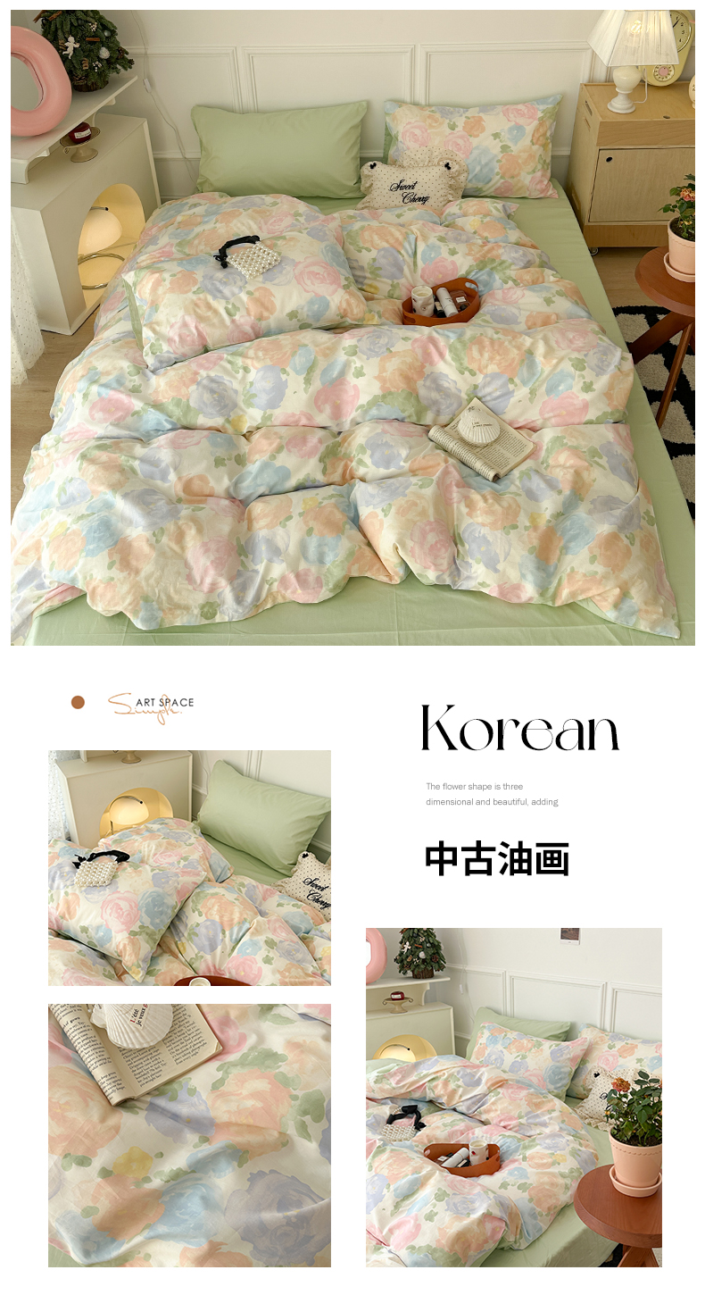 商品名称:昔可家纺 2024新款韩式混搭系列四件套 中古油画
