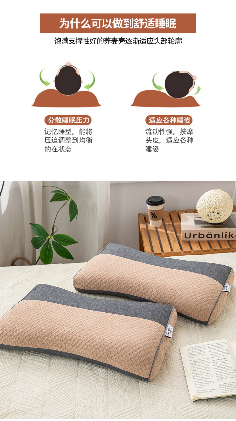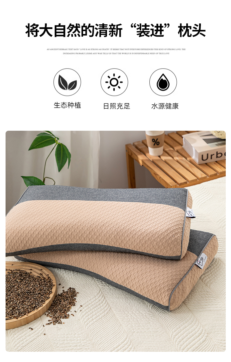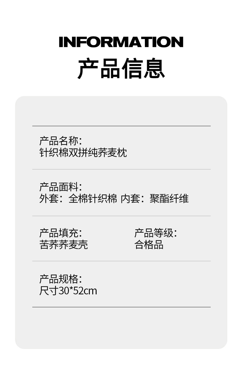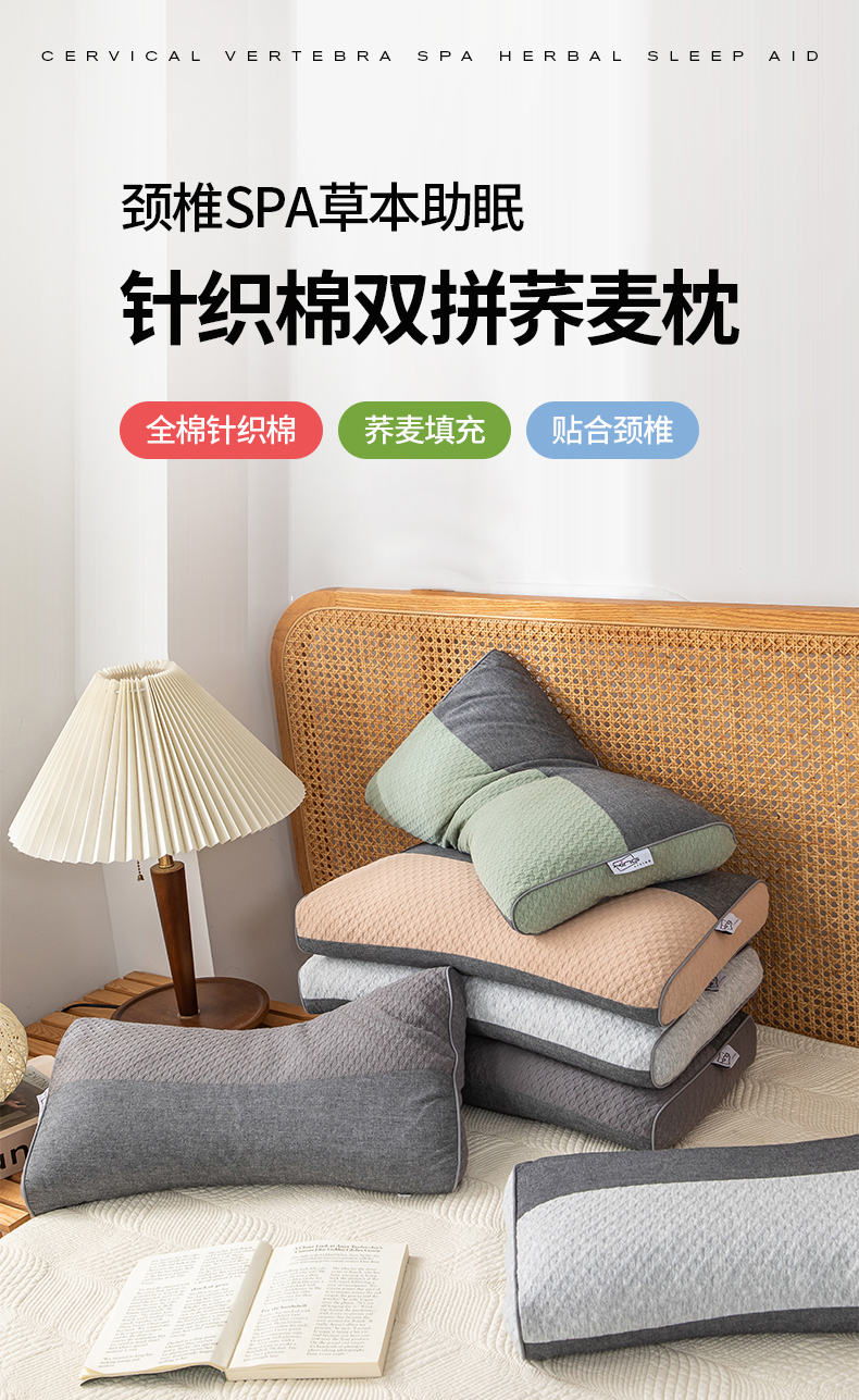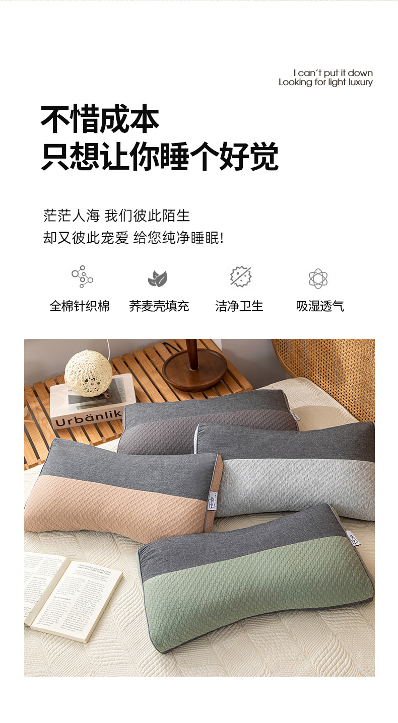 商品名称:(总)织布人 2024新款荞麦枕全棉水洗棉针织拼色全荞麦壳护颈枕头枕芯