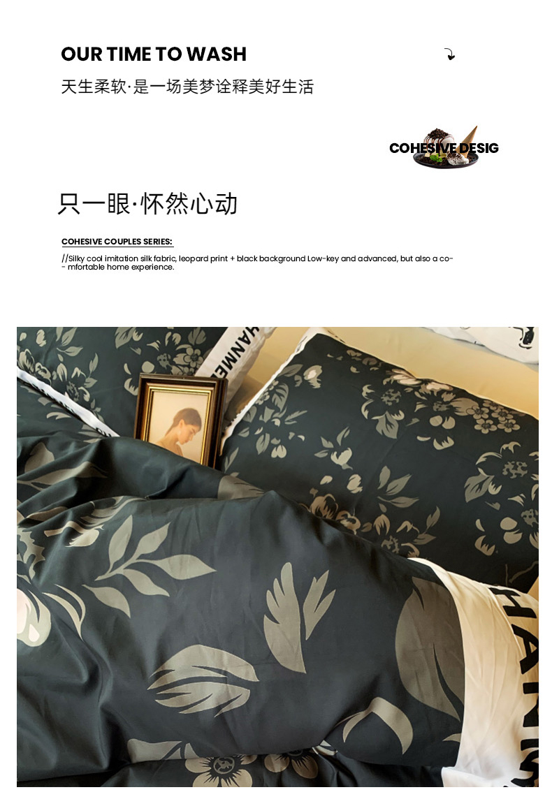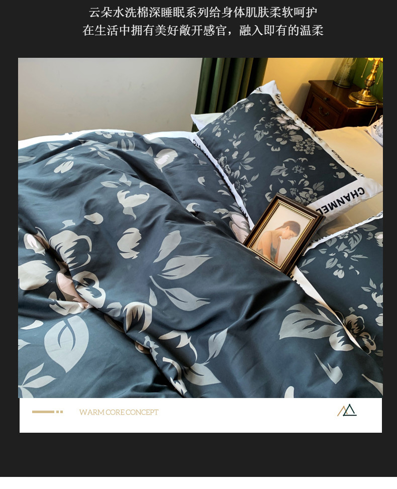 商品名称:色鬼布艺 2024新款花沐春夏云朵水洗棉四件套 【云朵棉】轻奢黑花