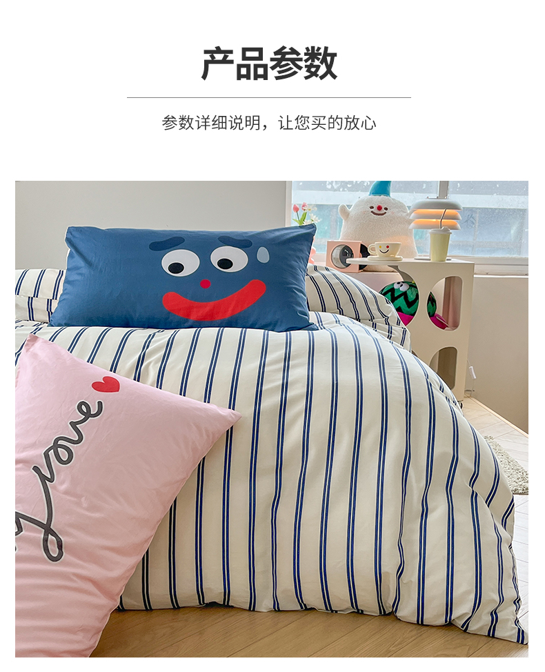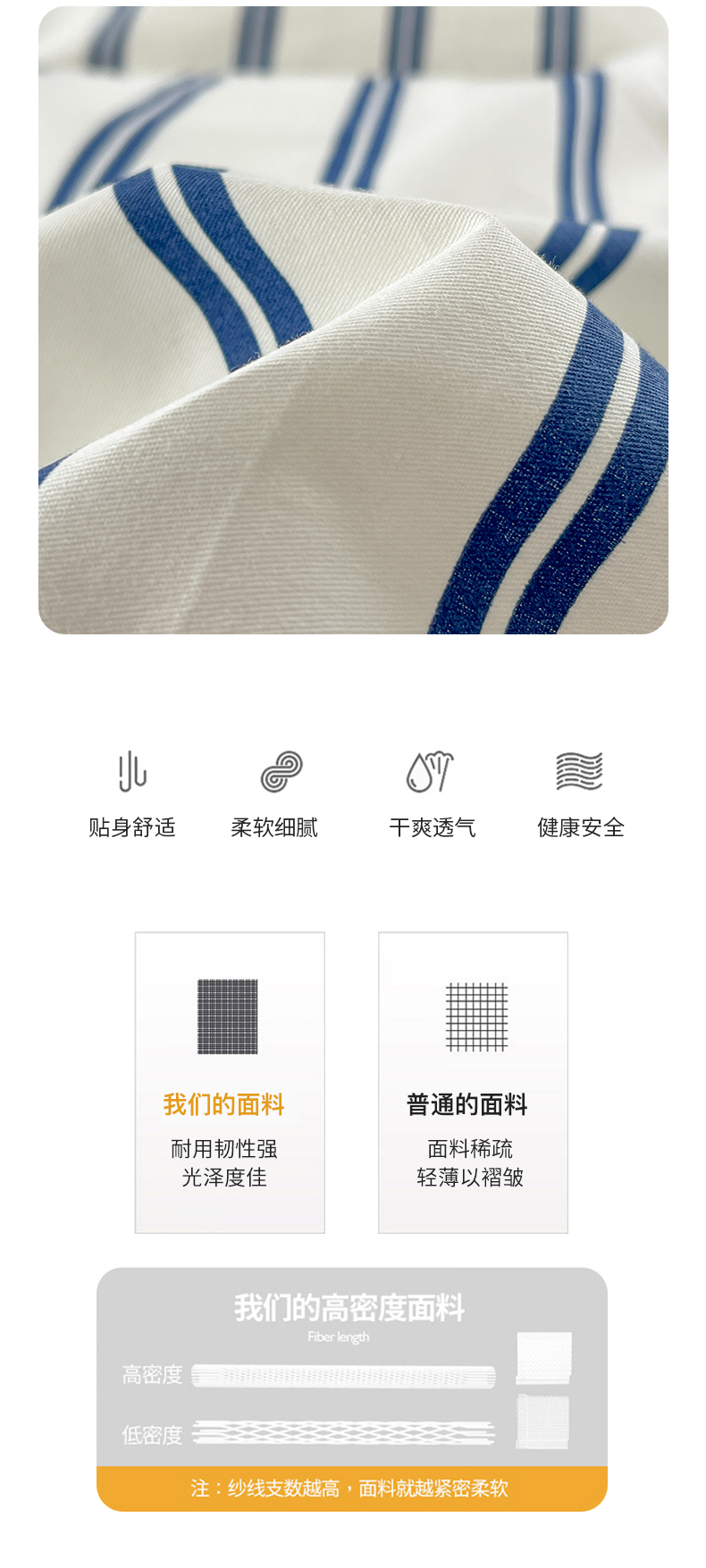 商品名称:2024新款大版枕套数码印花全棉四件套 蓝竖条