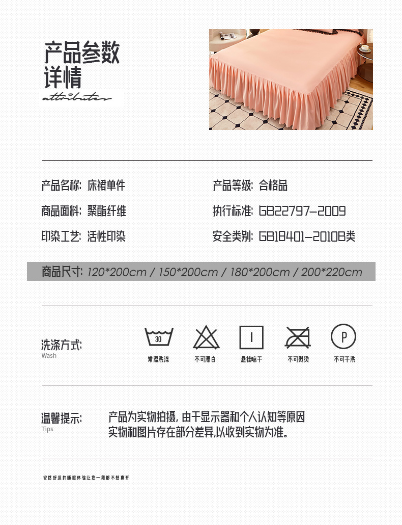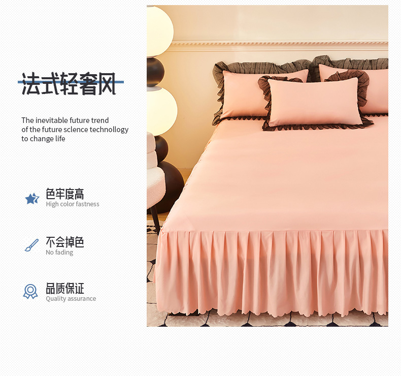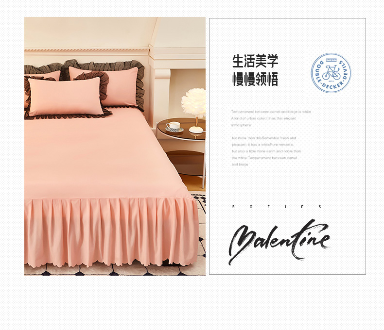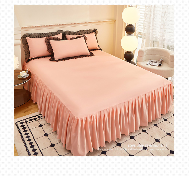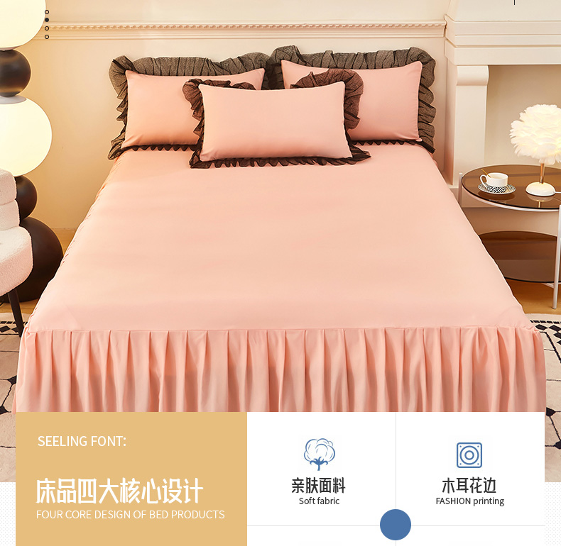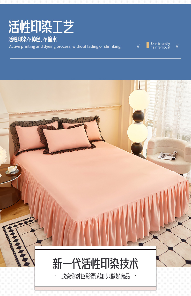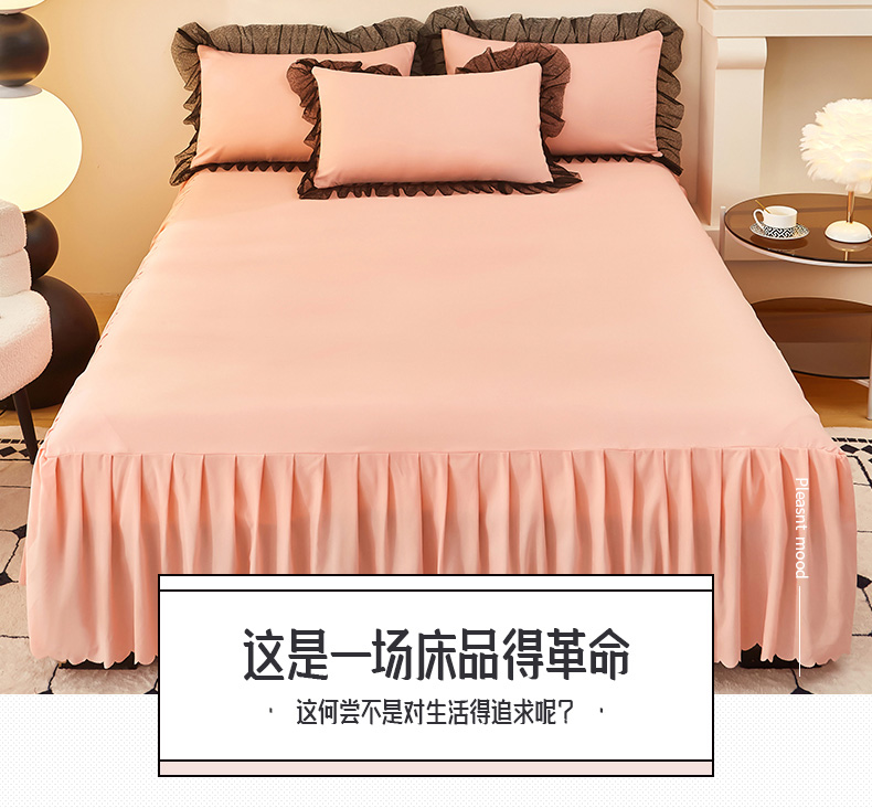 商品名称:莉莉安家纺 2025新款亲肤磨毛木耳花边床裙款单床裙 爱丽丝-藕粉玉