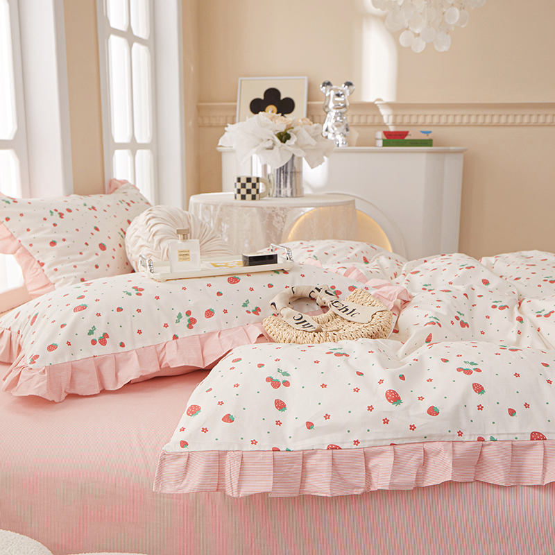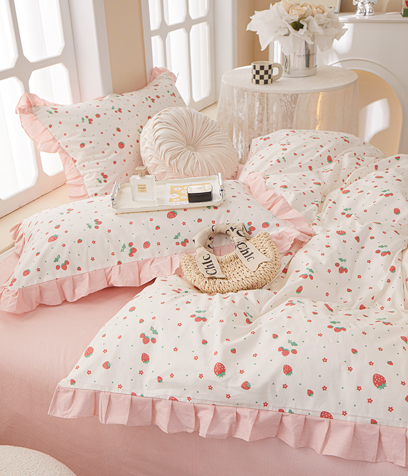 当前位置: 91家纺网 > 商品网购 > 床品套件 > 四件套 > 全棉普通四件套 > 一米阳光 2024新款2月全棉花边款四件套 缤果