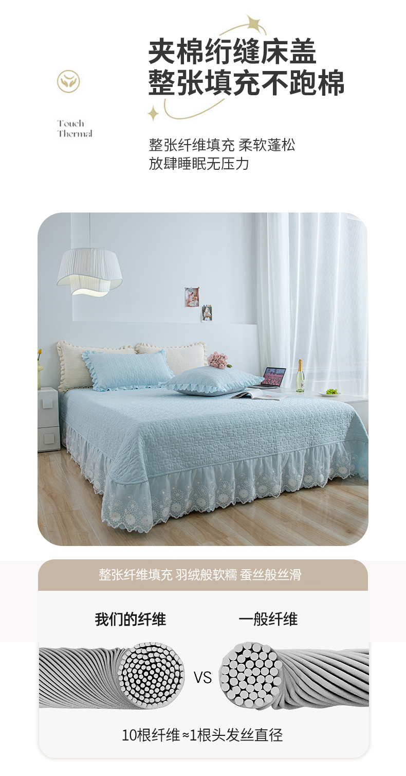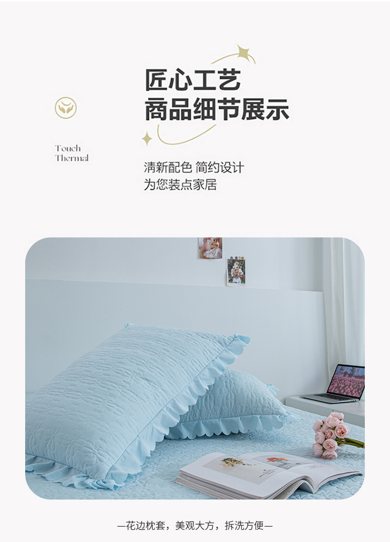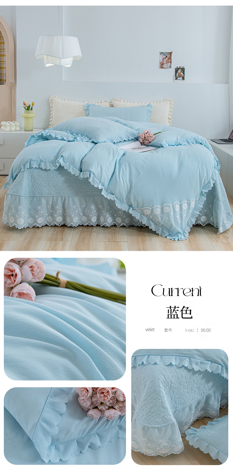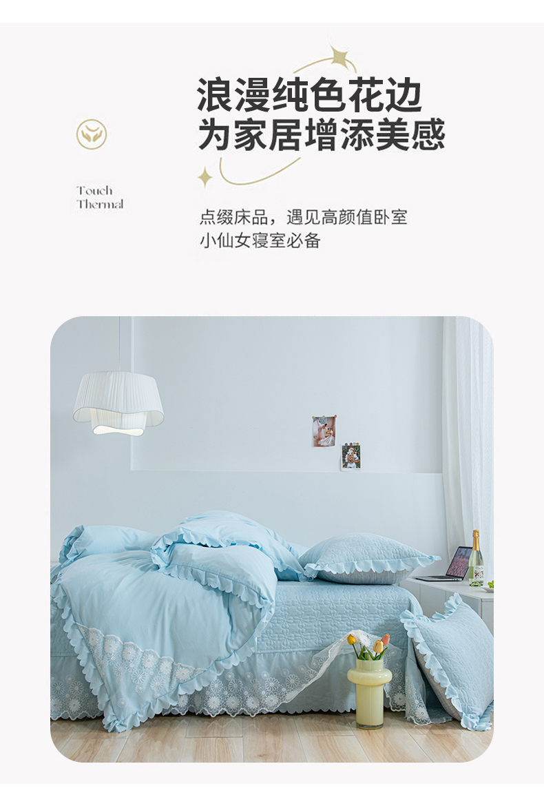 商品名称:乐嘉盈2025新款纯色水洗棉麻韩版花边泡泡纱床盖款四件套 蓝色