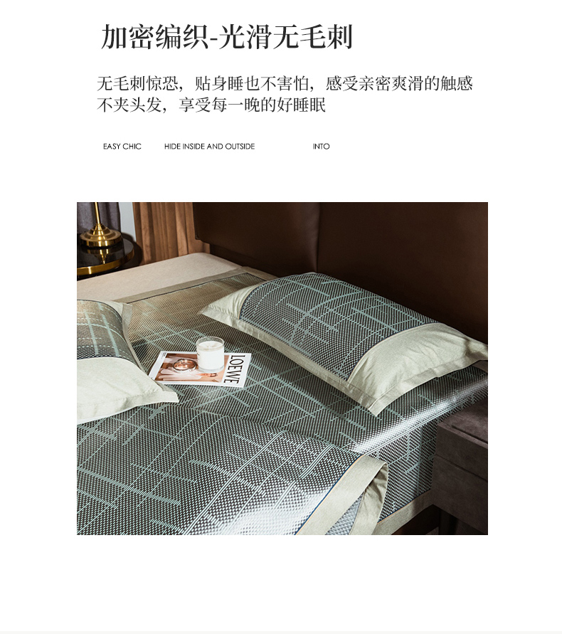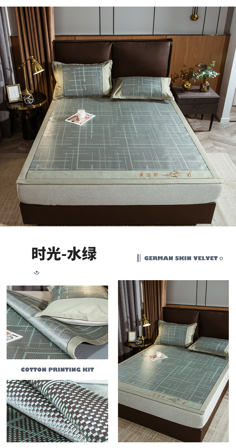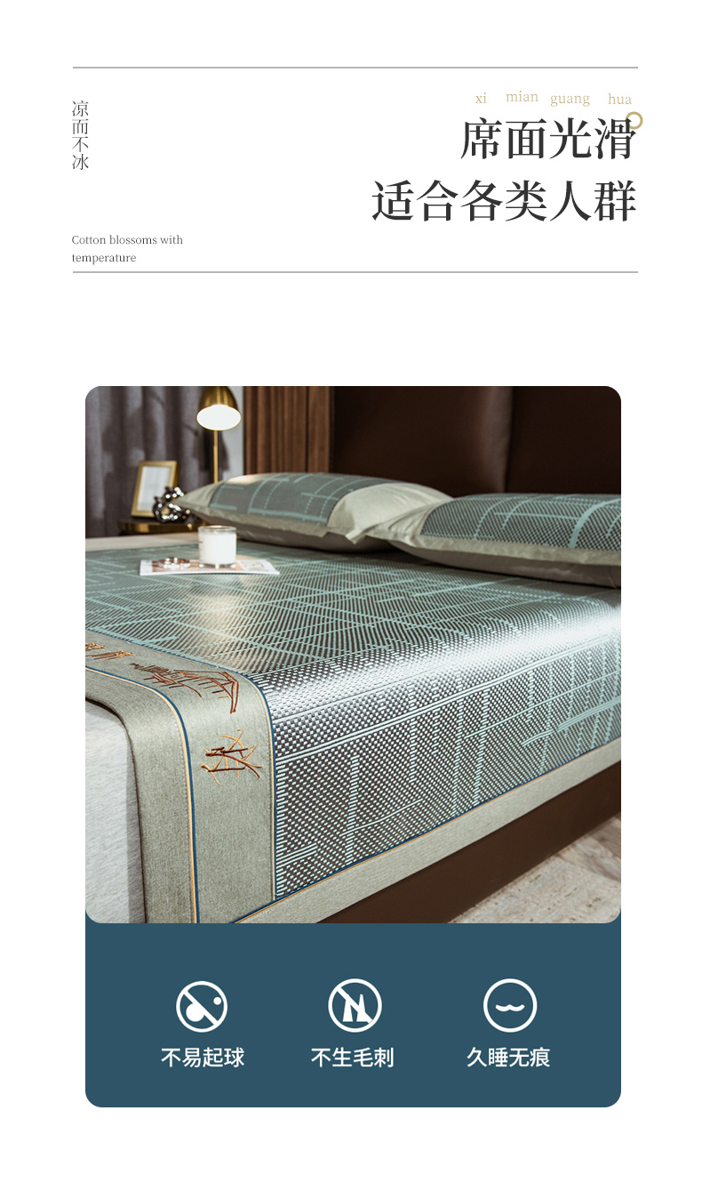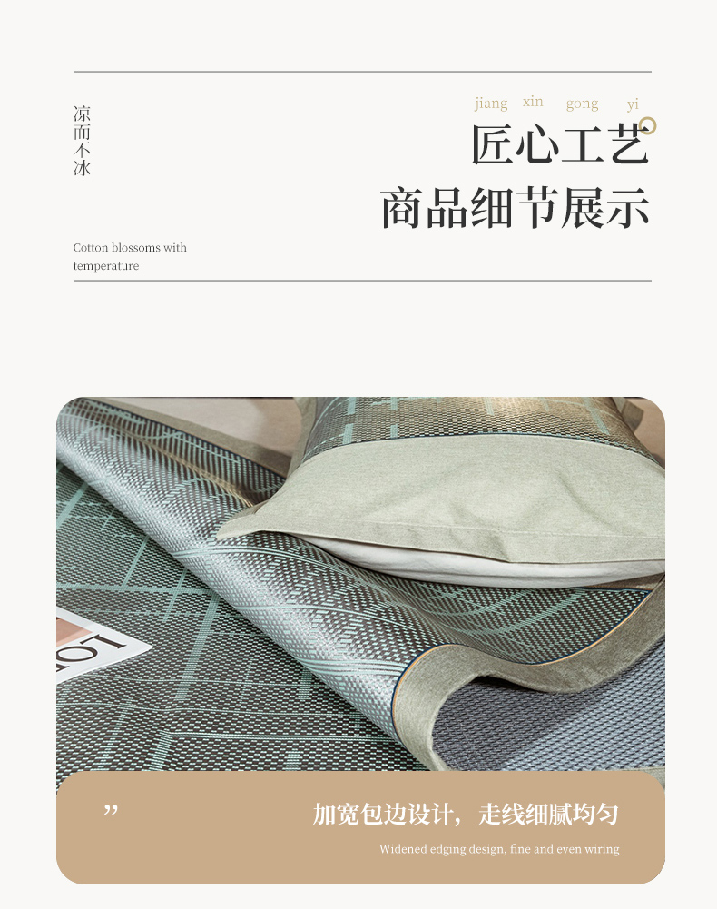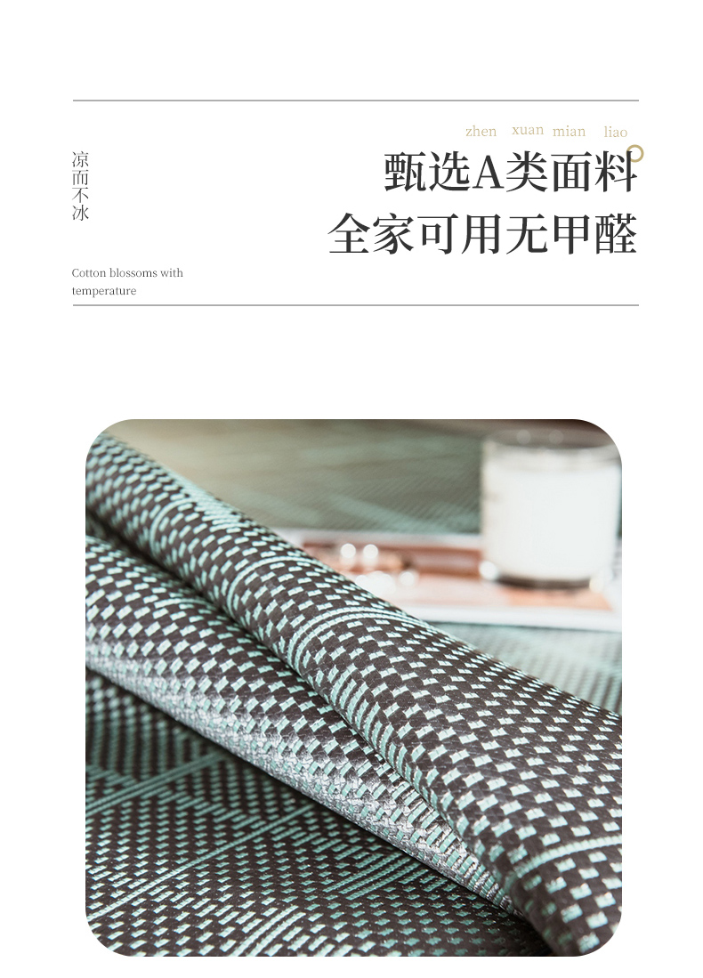 当前位置: 91家纺网 > 商品网购 > 床上用品 > 凉席 > 其他凉席 > 全季家居 2024新款加厚加密宽边刺绣提花冰藤凉席 时光-水绿(床席款)