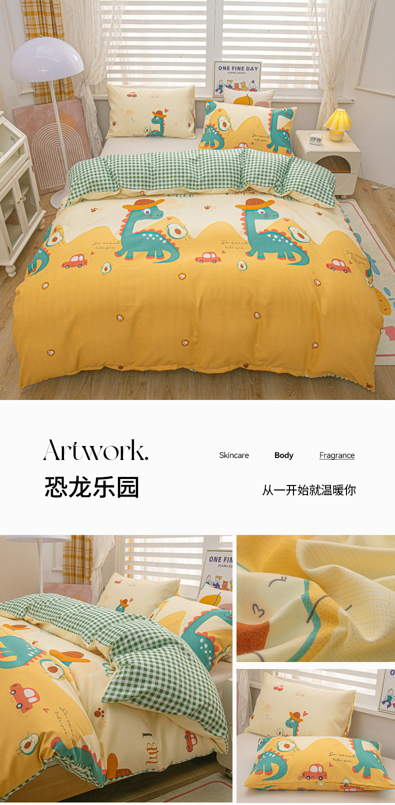 当前位置: 91家纺网 > 商品网购 > 床品套件 > 四件套 > 莎臣豹 2025新款植物羊绒印花四件套 恐龙乐园