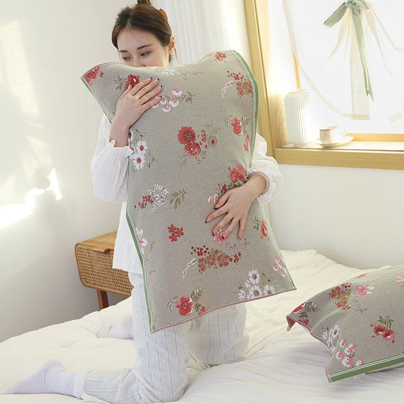• 91家纺网 家纺一手货源 找家纺 朴尔毛巾被2024年新品全棉细纱编织纹AB版透气枕巾 立体花园52*78cm