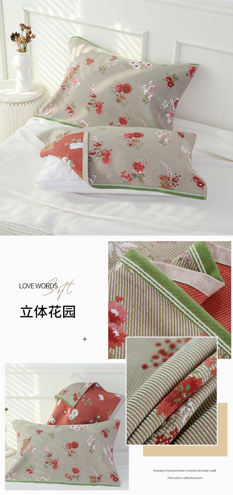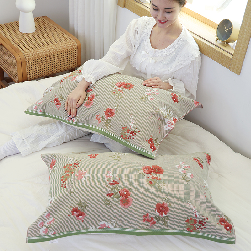 当前位置: 91家纺网 > 商品网购 > 床上用品 > 枕巾 > 朴尔毛巾被2024年新品全棉细纱编织纹AB版透气枕巾 立体花园52*78cm