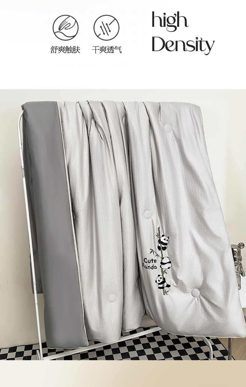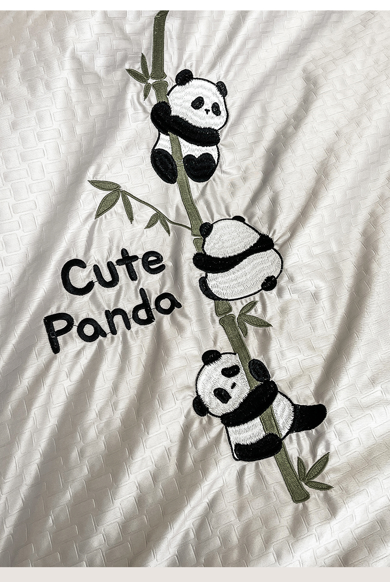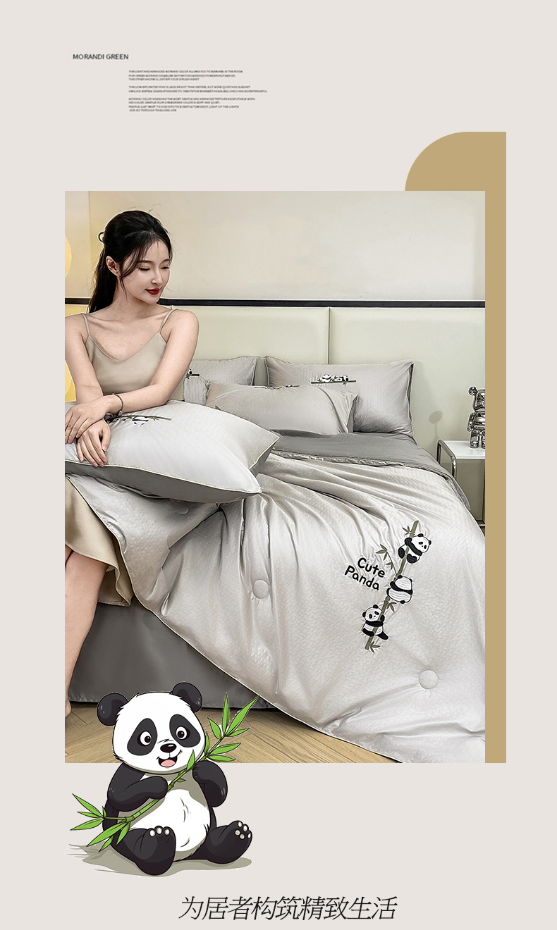 古吉梦 2024新款水洗真丝提花夏被-熊猫 山灰+中灰