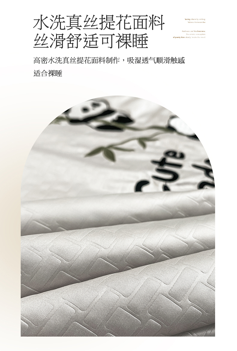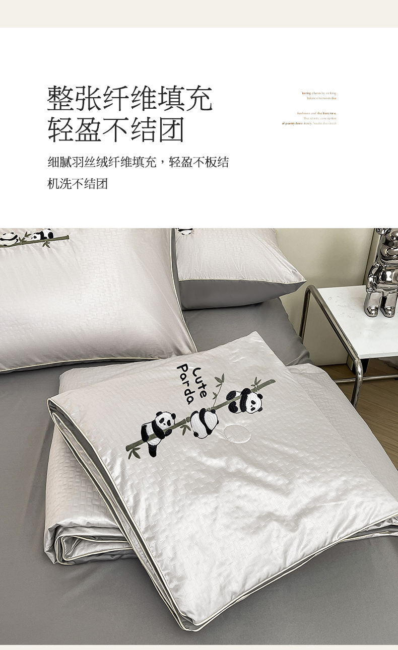 商品名称:古吉梦 2024新款水洗真丝提花夏被-熊猫 山灰+中灰