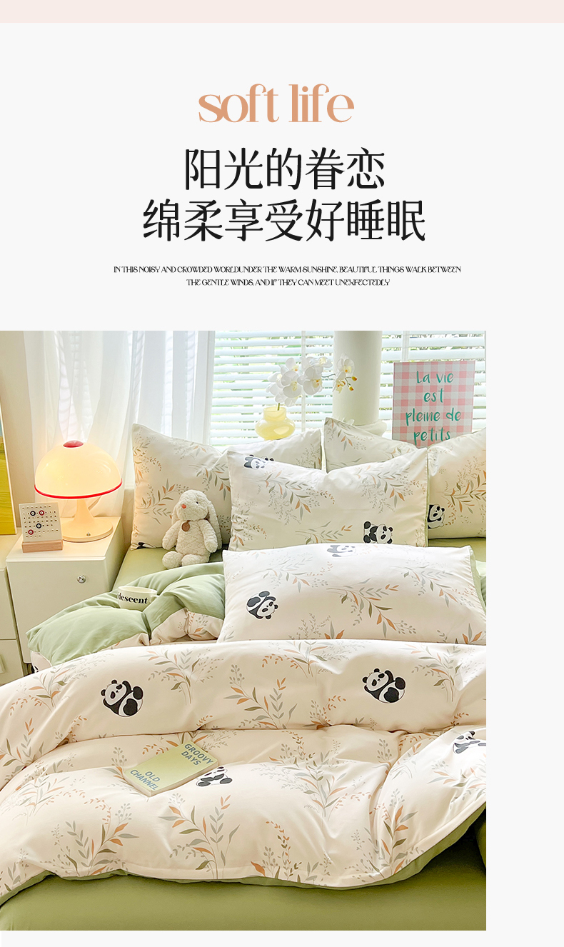当前位置: 91家纺网 > 商品网购 > 床品套件 > 四件套 > 双层纱四件套 > 多品 2024新款水洗棉双层纱四件套 熊猫家园