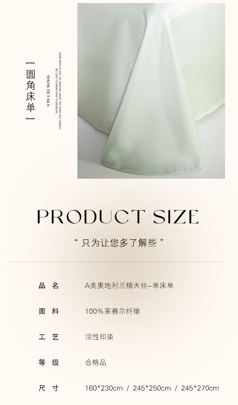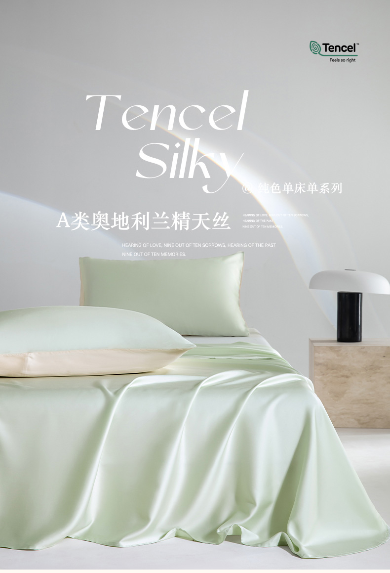商品名称:云栖家居 202460支A类兰精天丝系列单品床单(风格一)浅绿