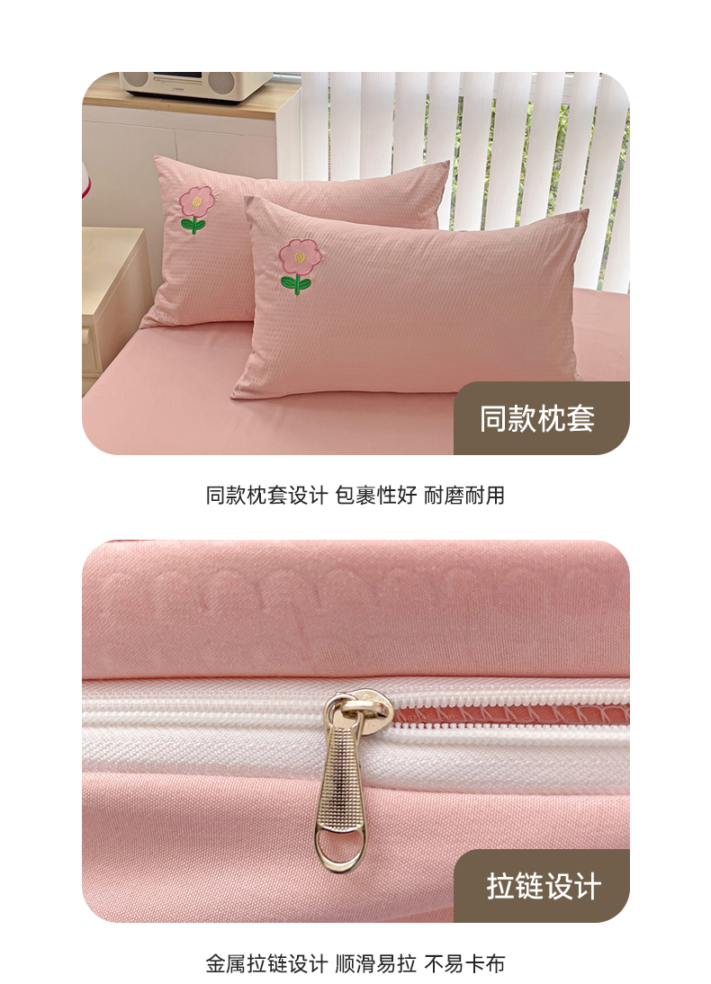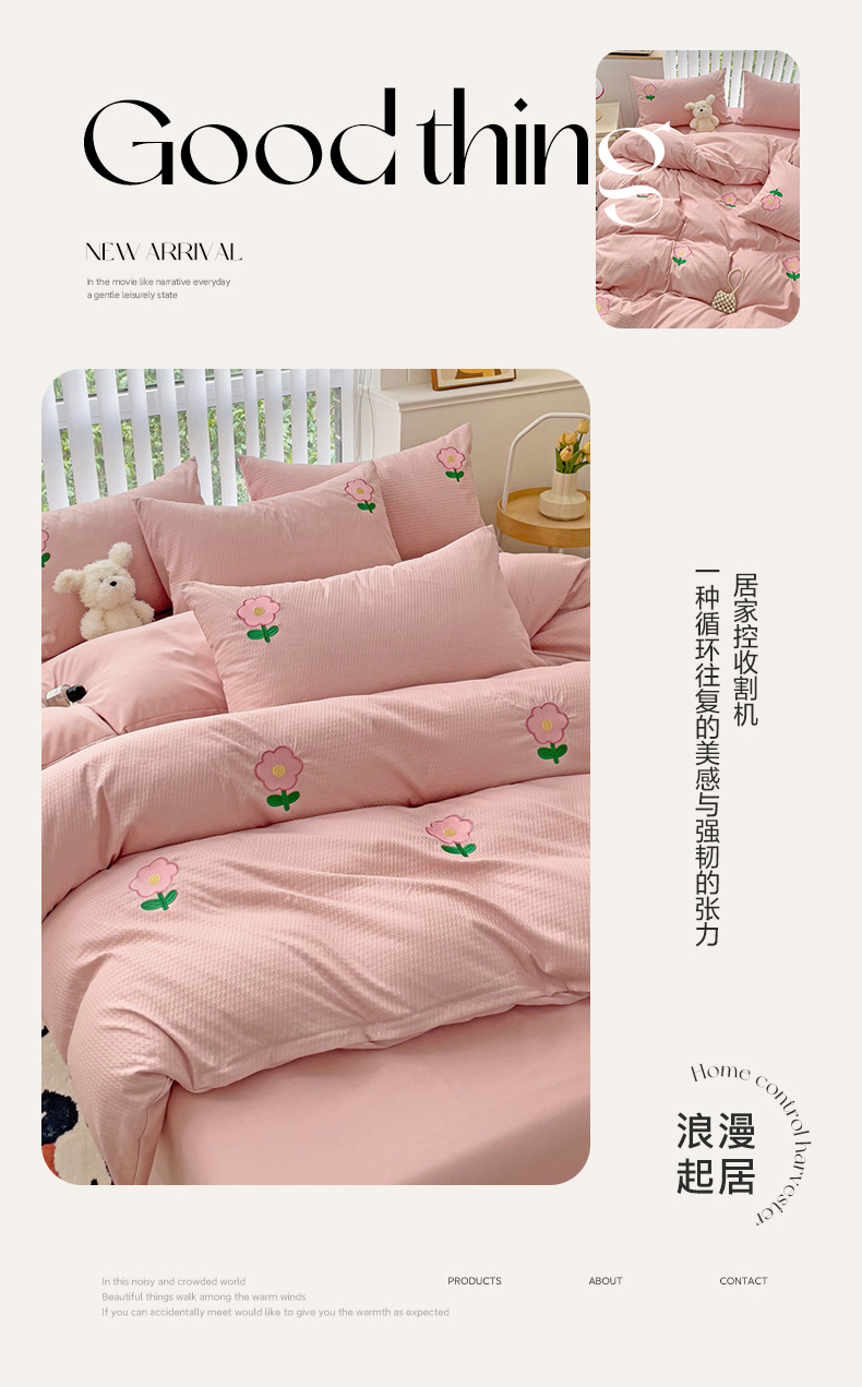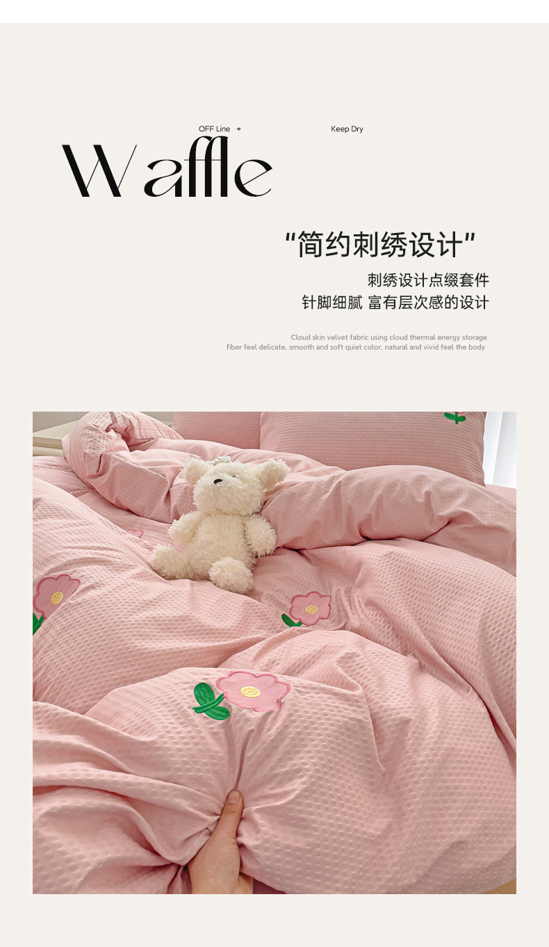 商品名称:N先生 2025新款水洗棉泡泡刺绣四件套 小花朵