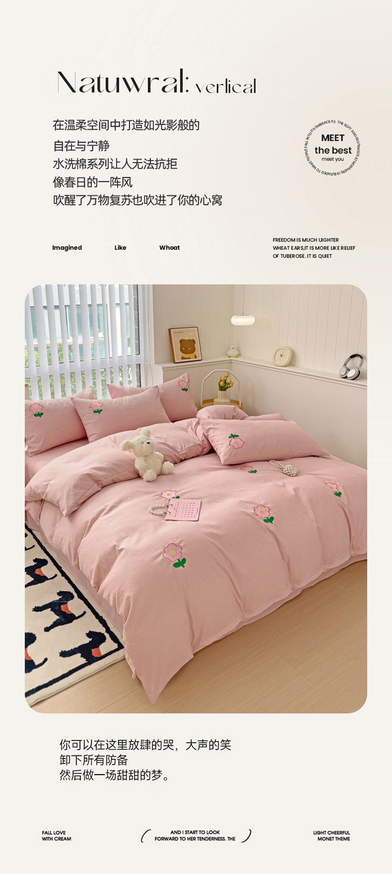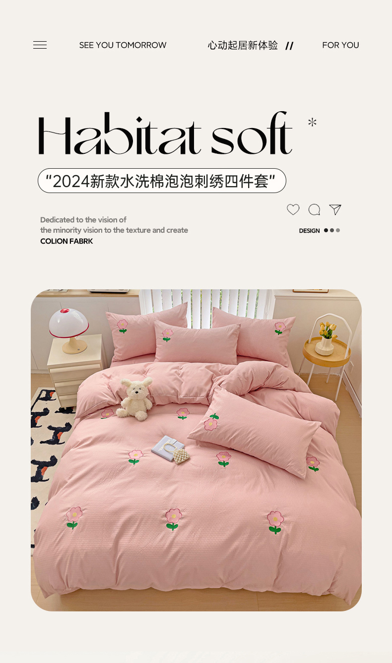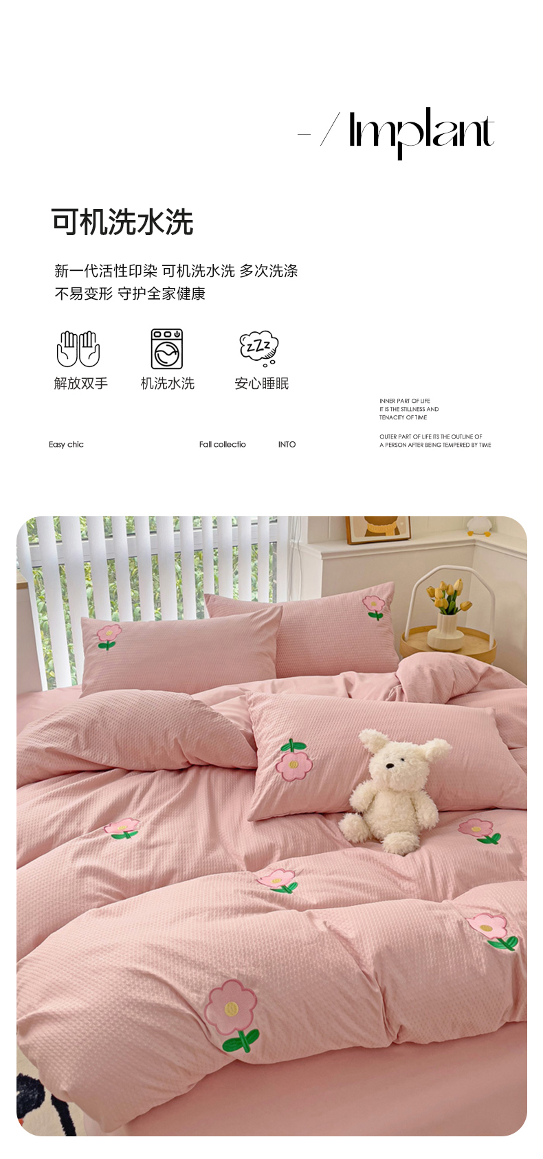 N先生 2025新款水洗棉泡泡刺绣四件套 小花朵