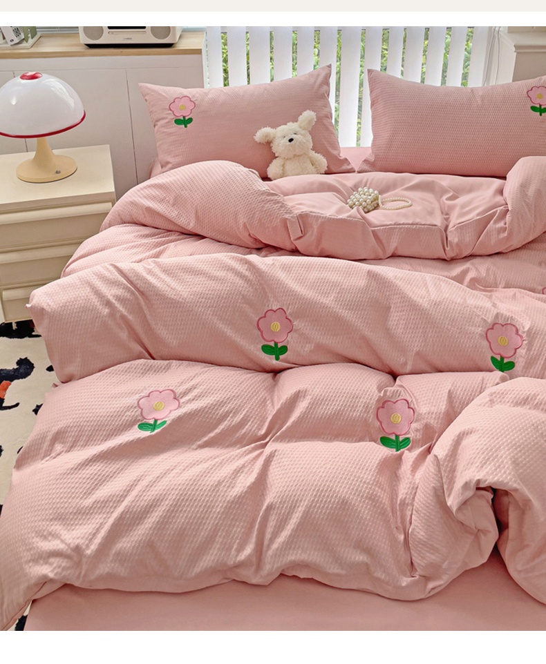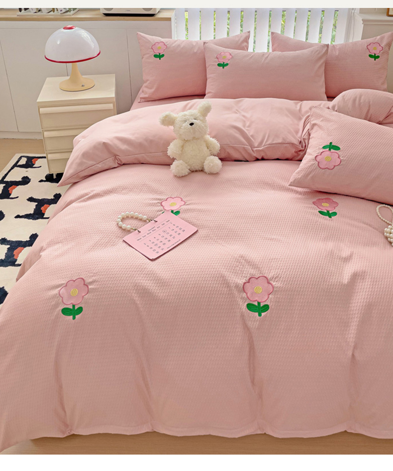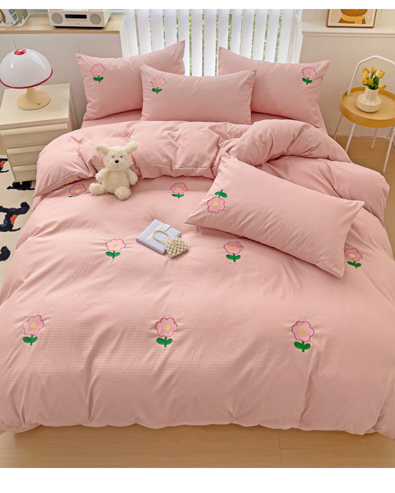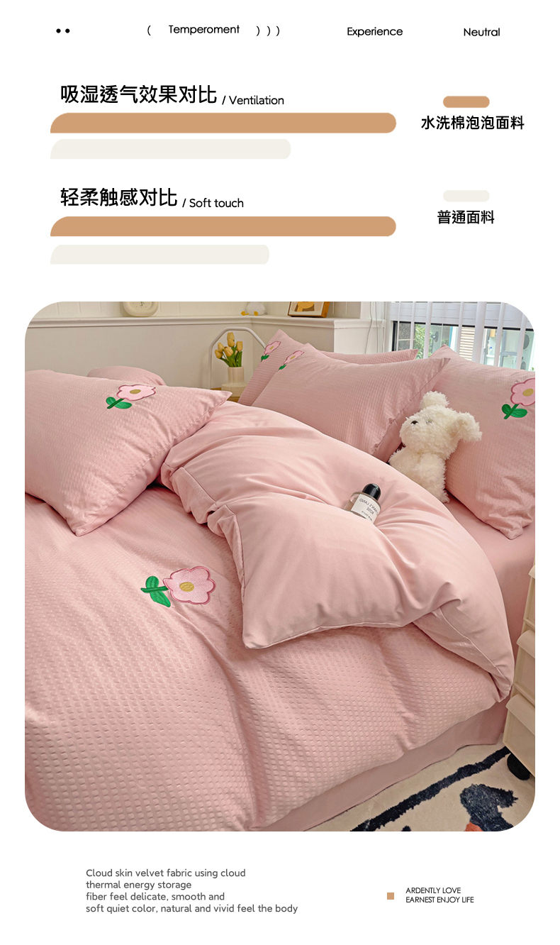 N先生 2025新款水洗棉泡泡刺绣四件套 小花朵