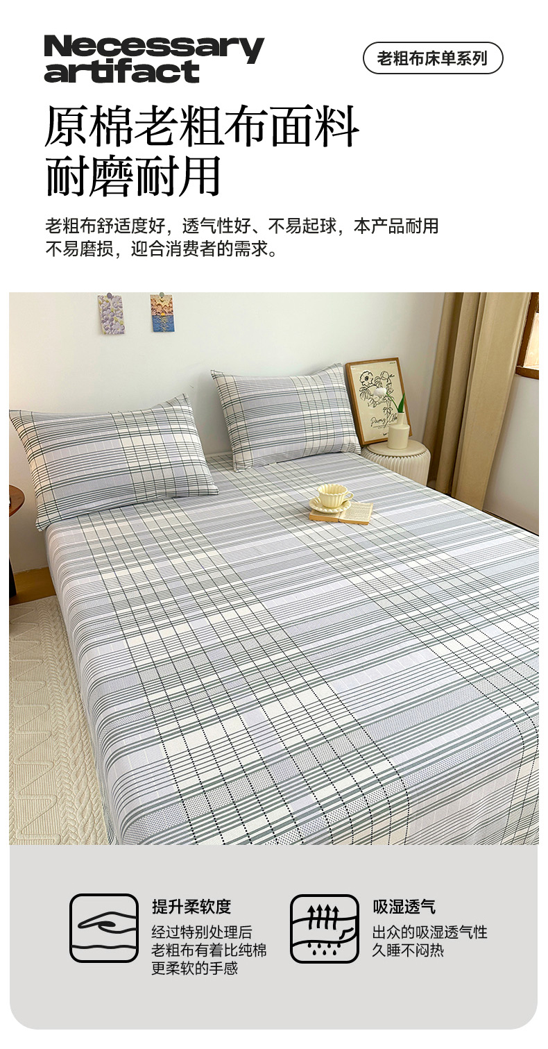 雨洋2025新款直播爆款老粗布凉席 灰条纹