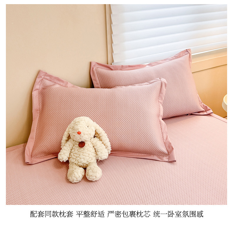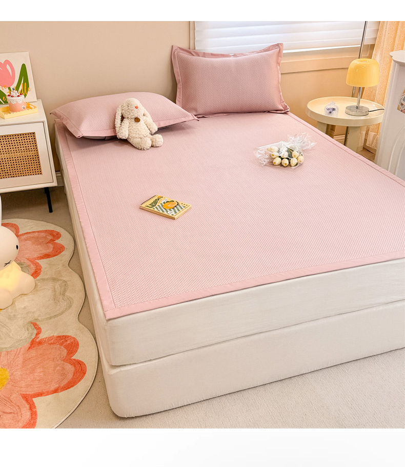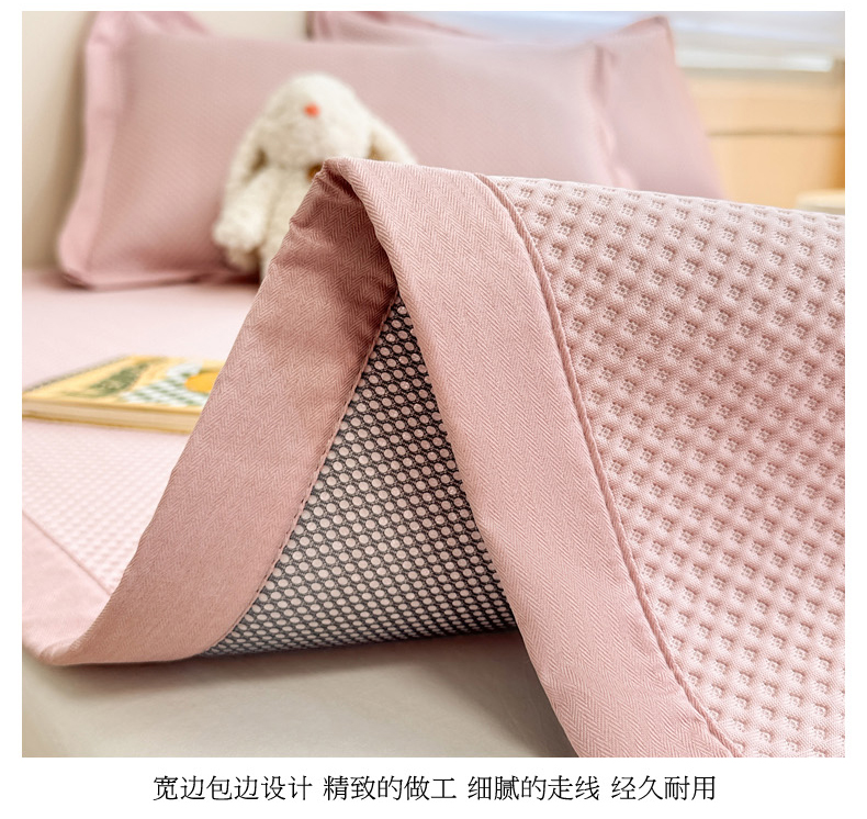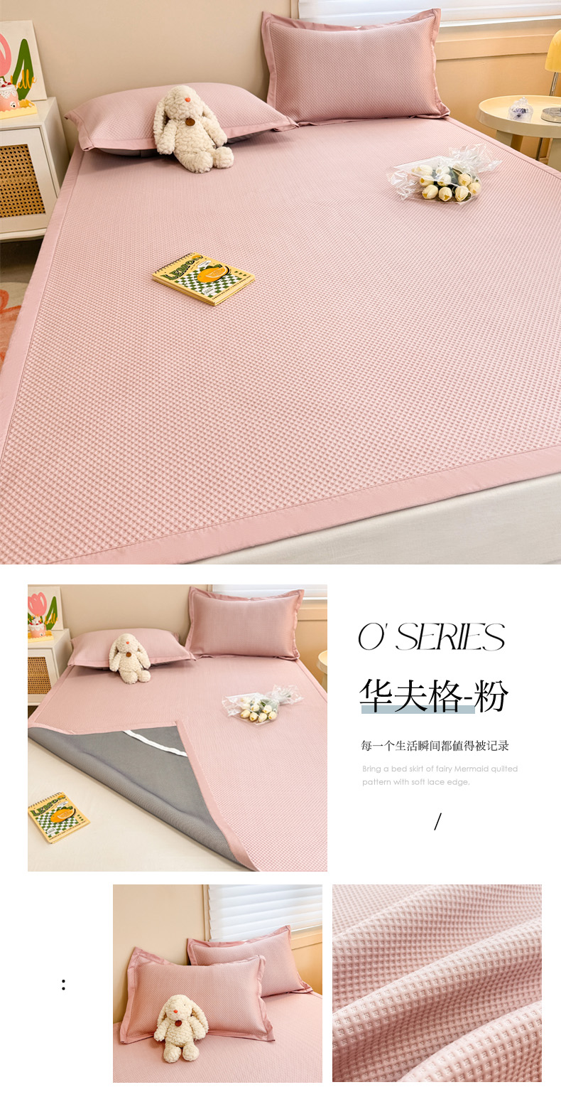 商品名称:柒月家居 2024新款PE凉感豆豆复合款凉席套件 华夫格-粉