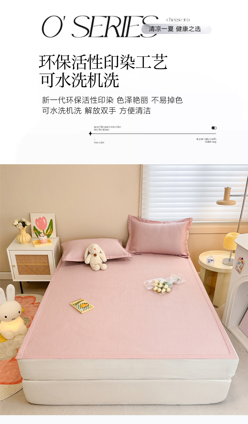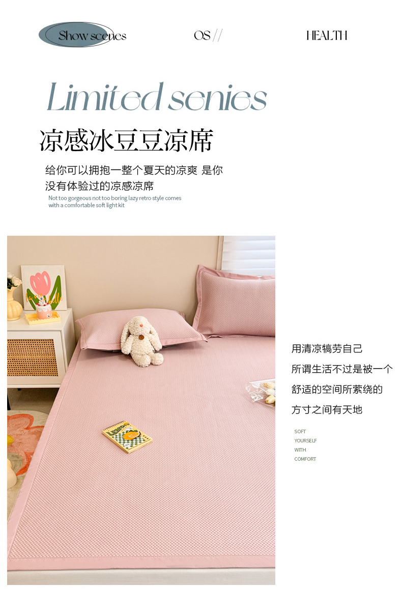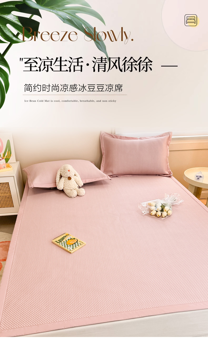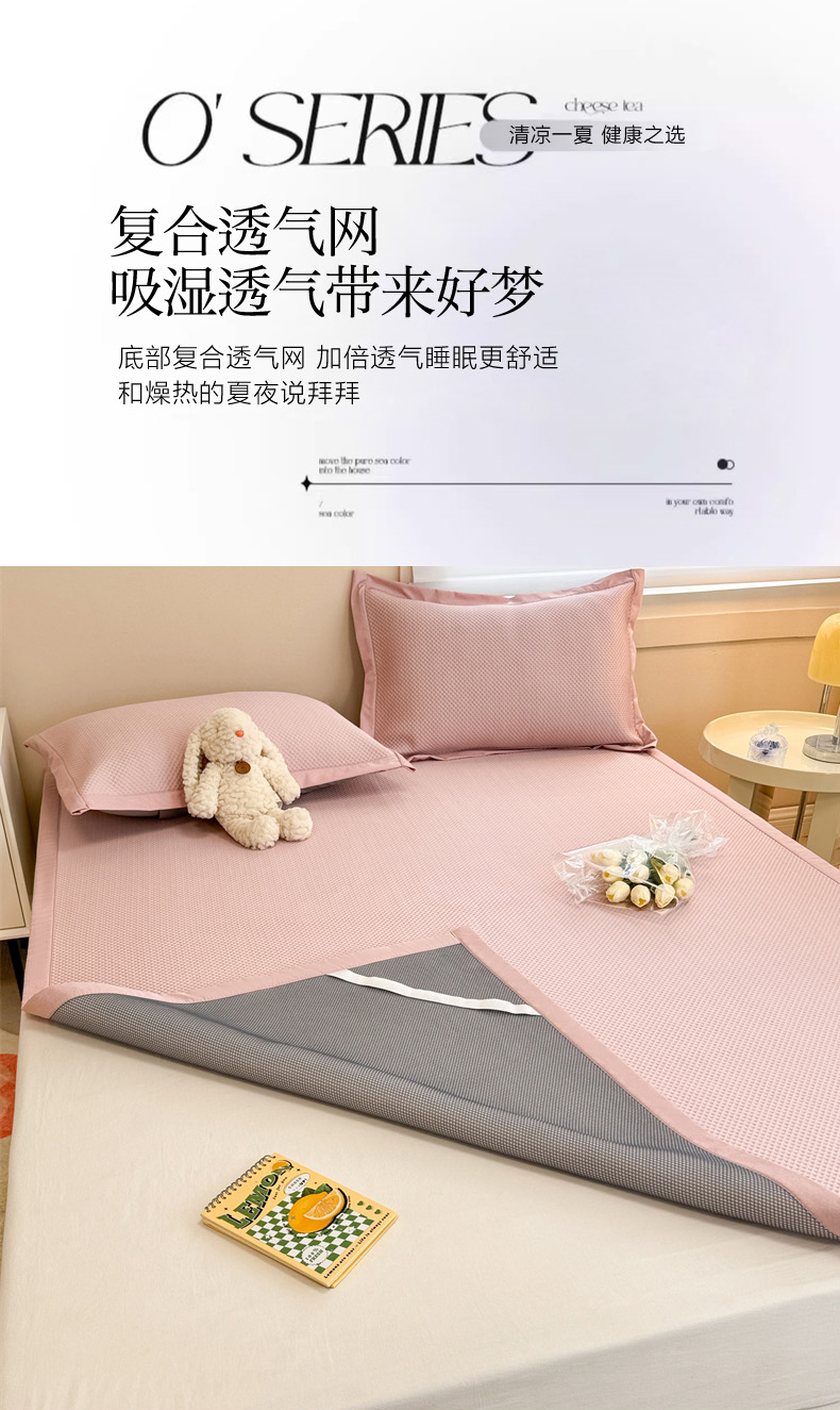 商品名称:柒月家居 2024新款PE凉感豆豆复合款凉席套件 华夫格-粉