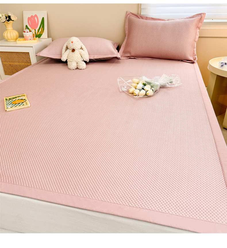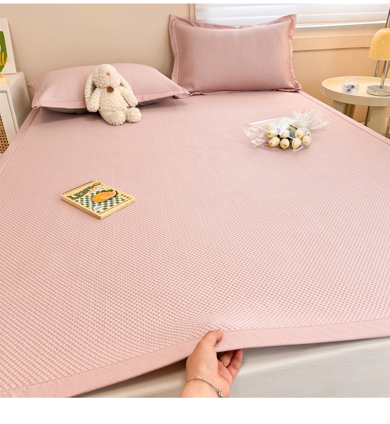 柒月家居 2024新款PE凉感豆豆复合款凉席套件 华夫格-粉