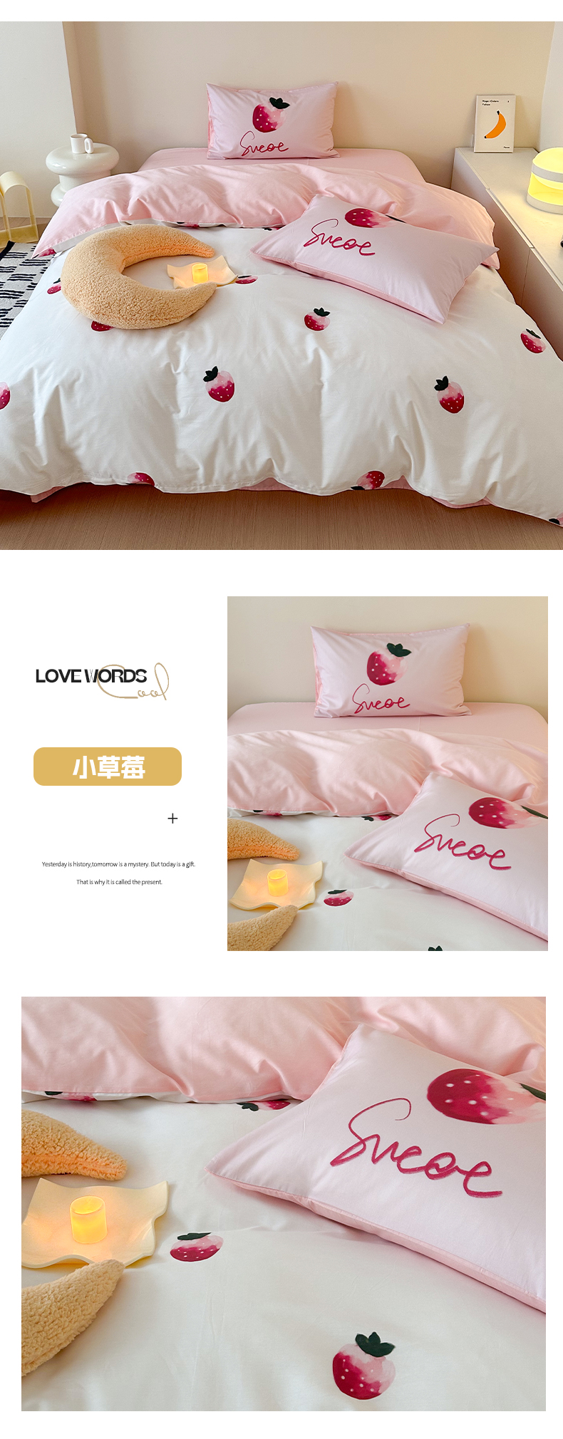 美乐迪家纺 2024ins韩风全棉四件套 小草莓