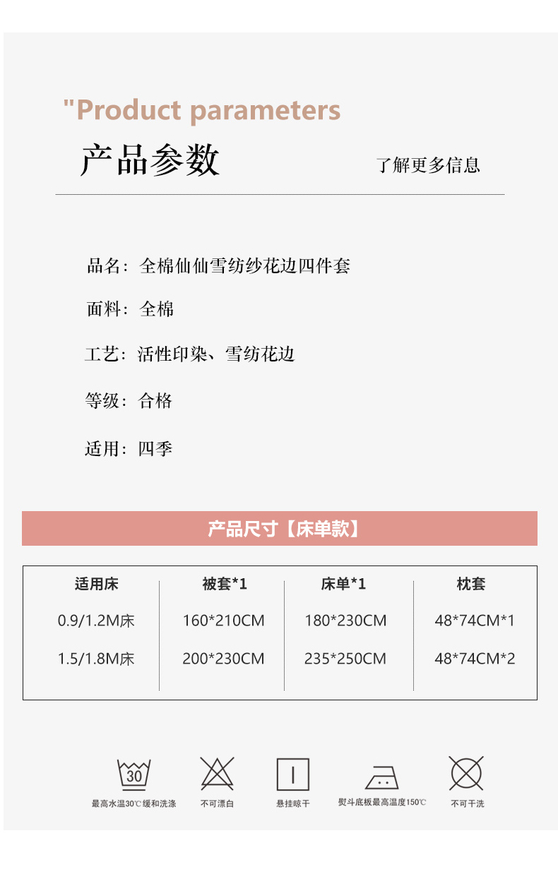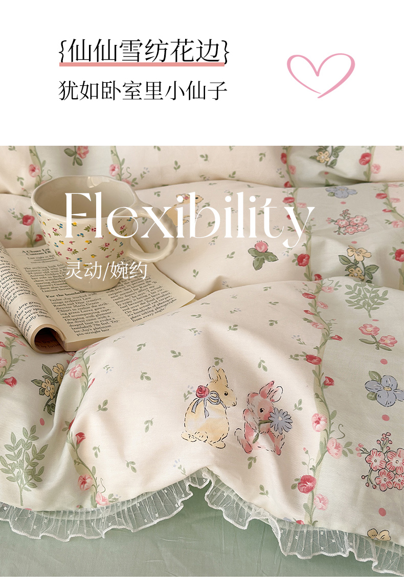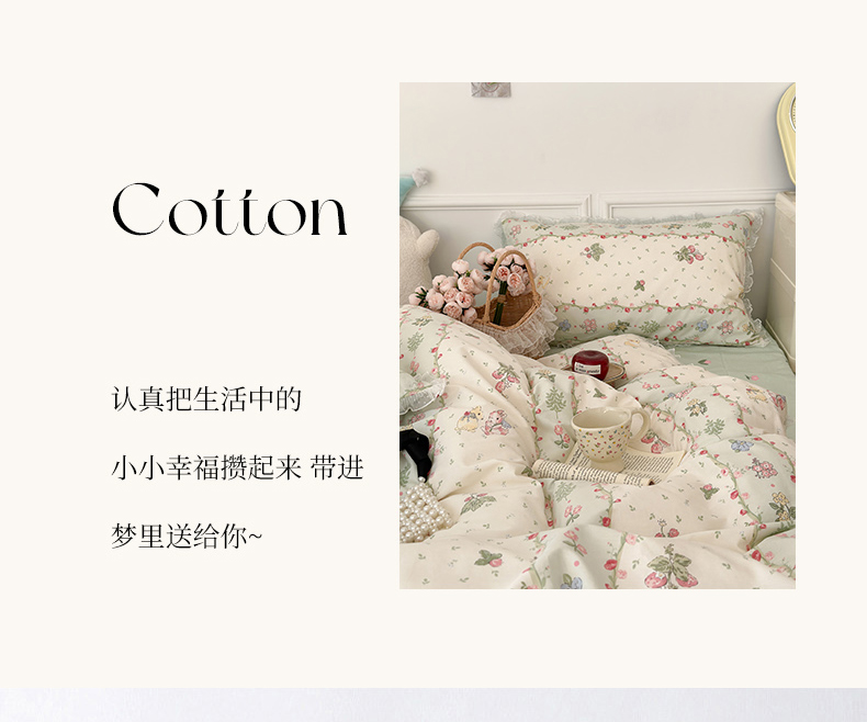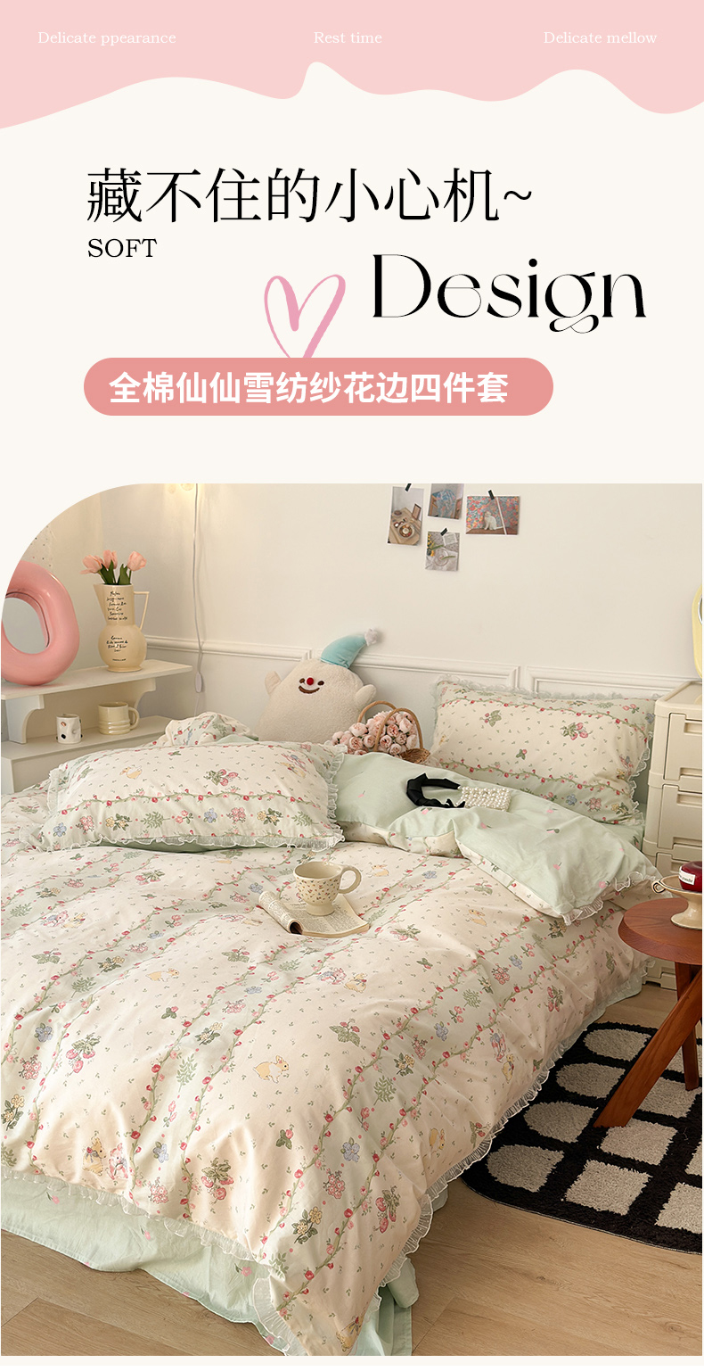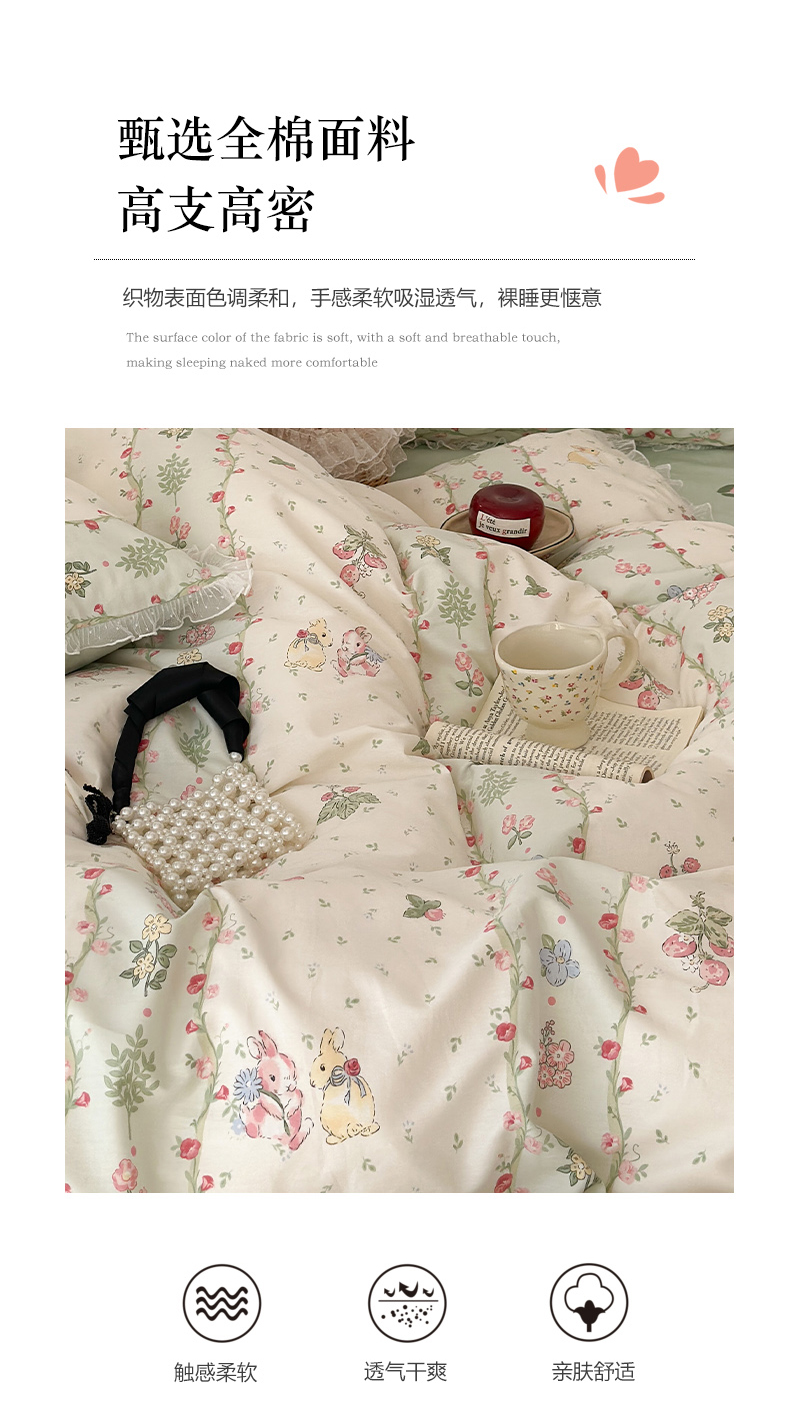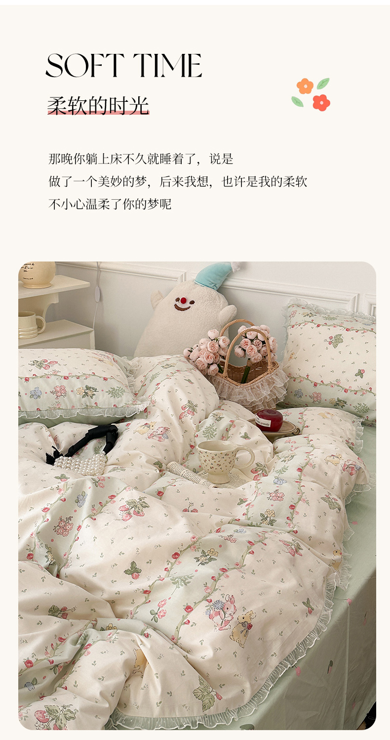 商品名称:昔可家纺 2024新款全棉仙仙雪纺纱花边四件套 草莓小兔