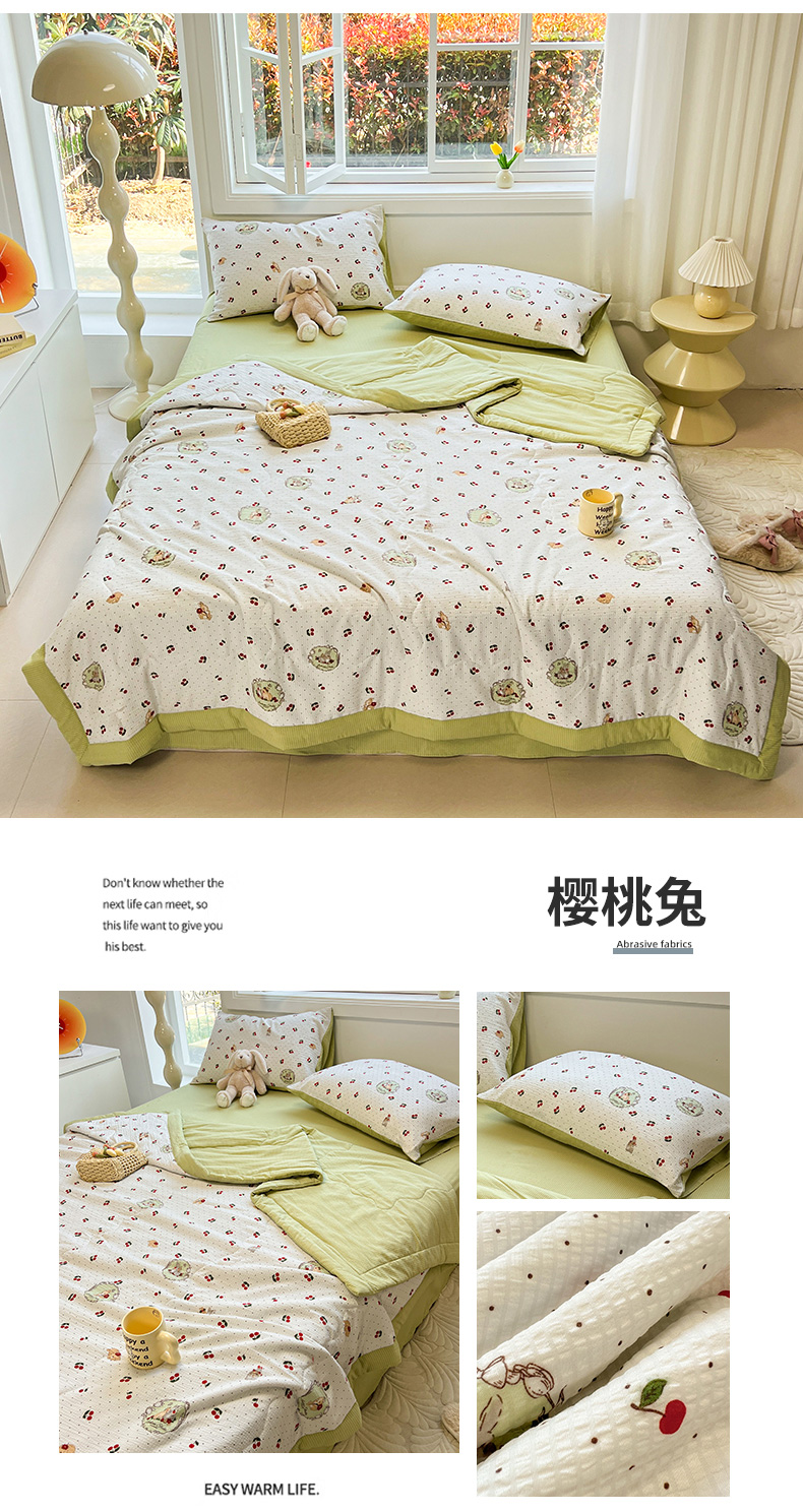 当前位置: 91家纺网 > 商品网购 > 床品套件 > 四件套 > 夏被四件套 > 安哆啦家纺 2024新款A类泡泡棉印花夏被四件套 樱桃兔