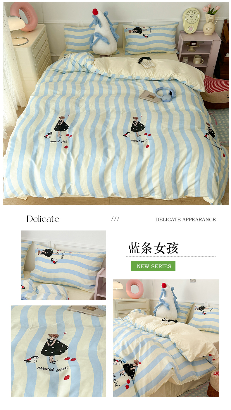 商品名称:昔可家纺 2024开春新款全棉印花卡通四件套 蓝条女孩