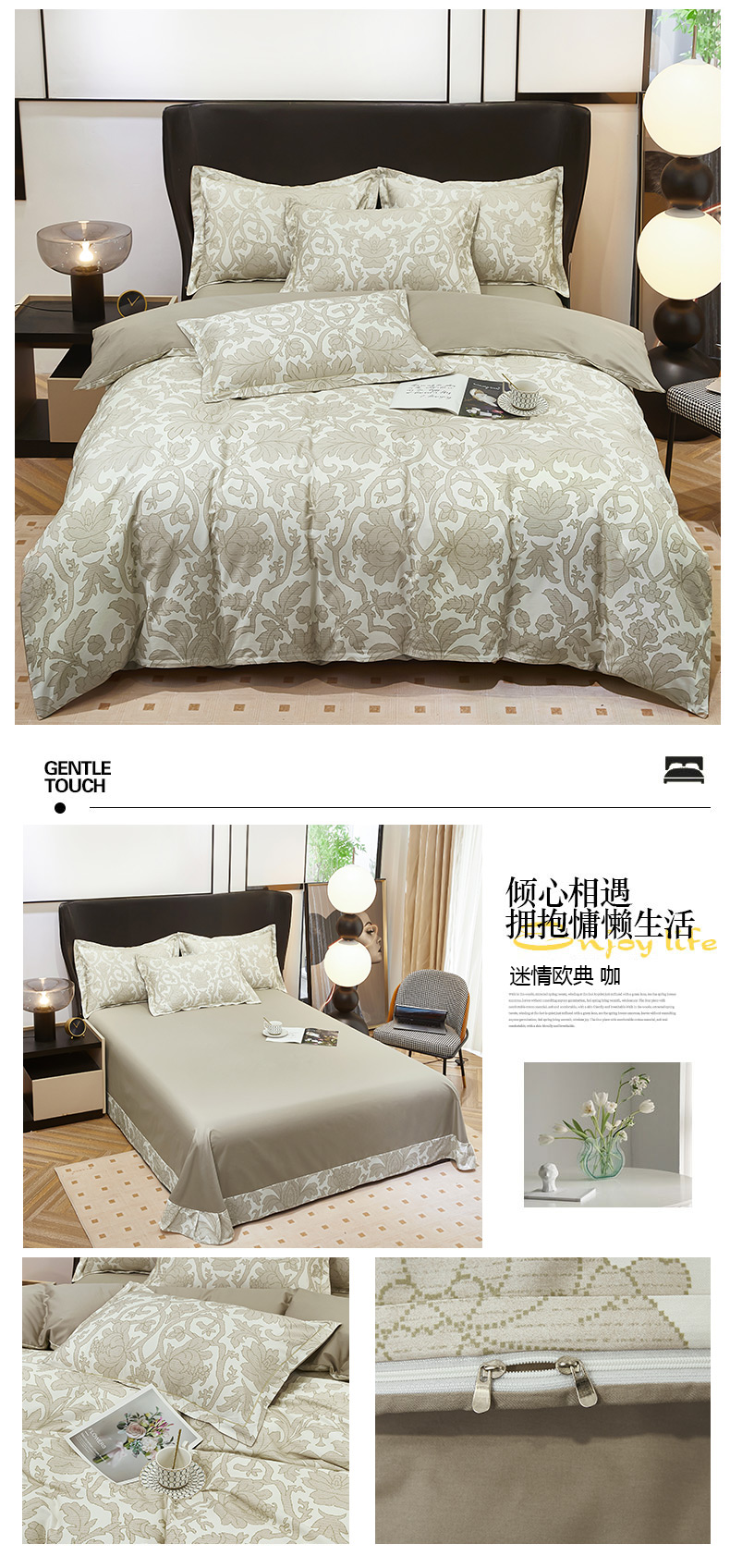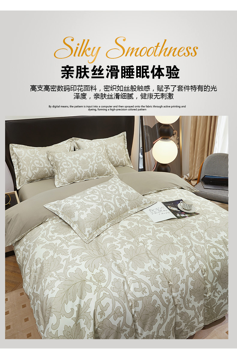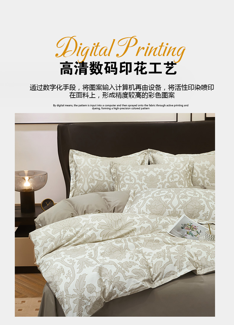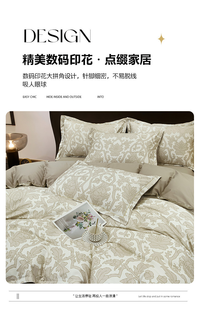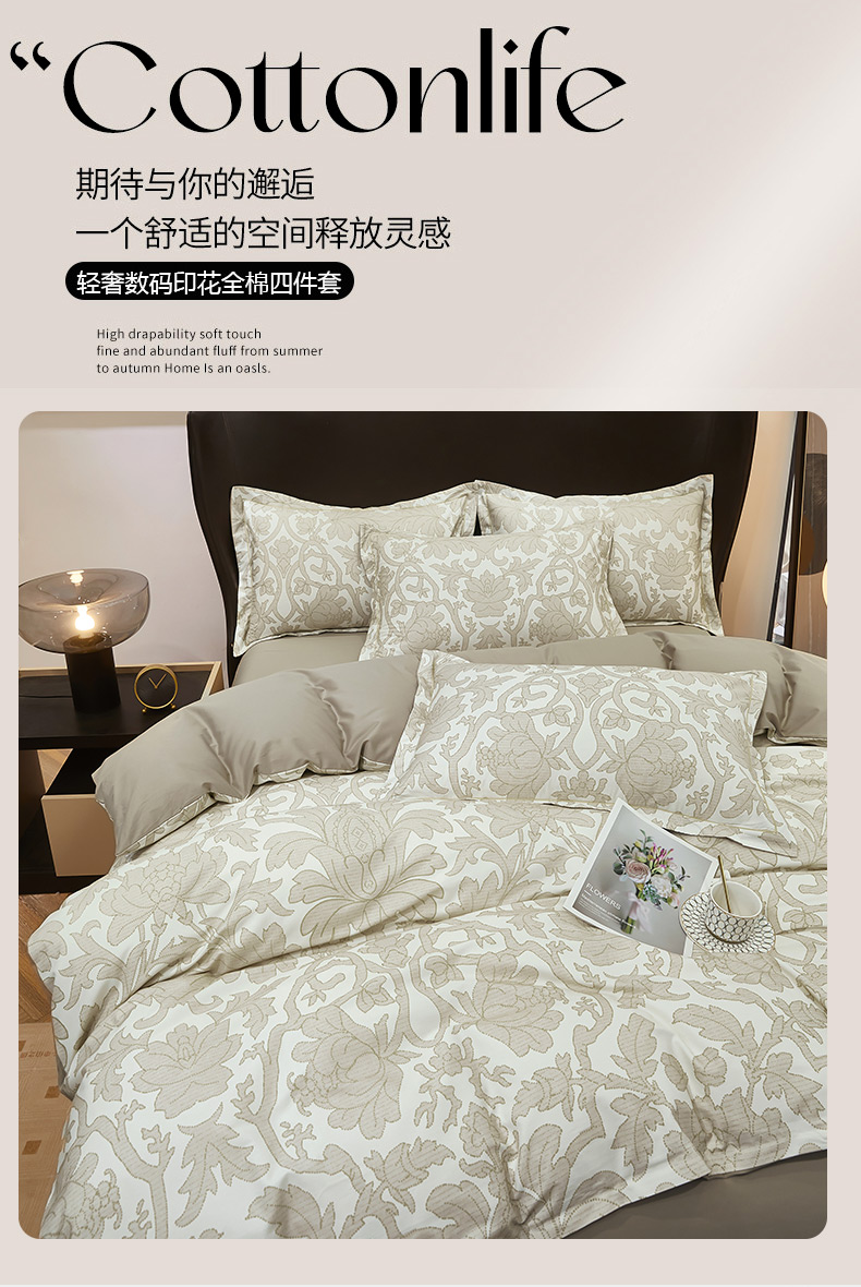 雲归梦 2024新款全棉铂金棉数码印花四件套迷情欧典 咖