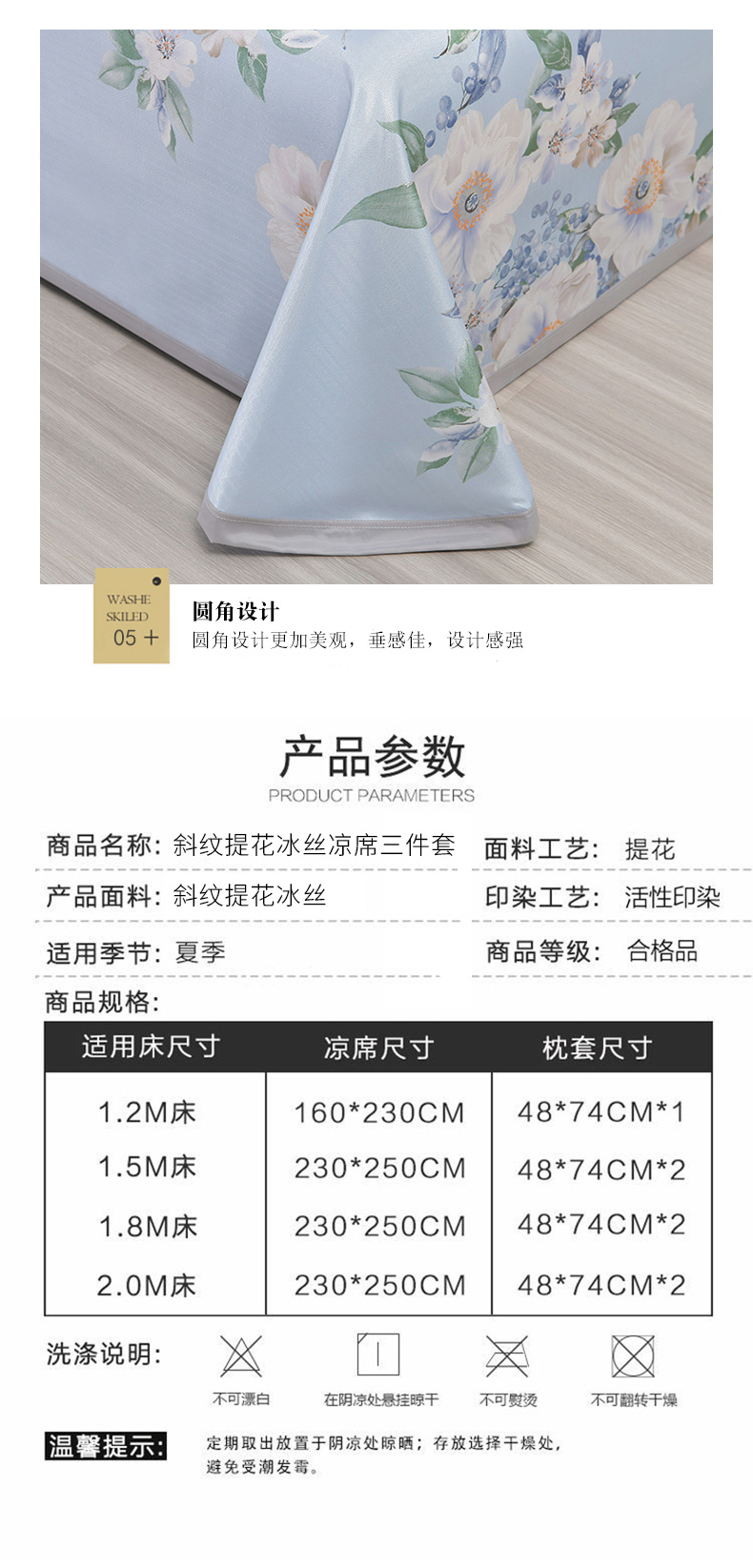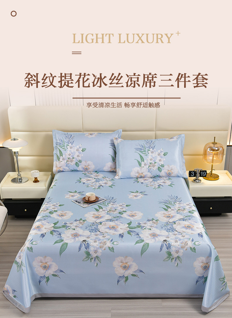 (总)星窝家纺 2025新款直播电商优选可机洗斜纹提花冰丝凉席三件套