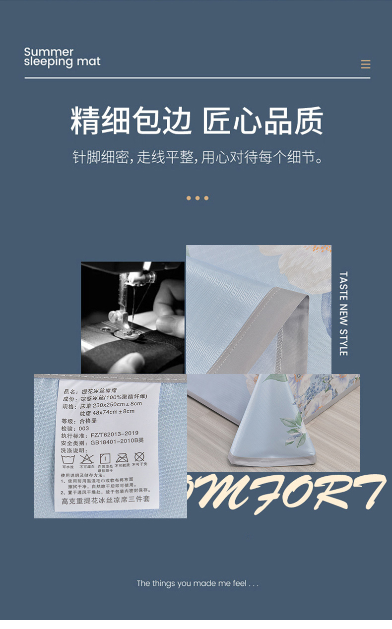 (总)星窝家纺 2025新款直播电商优选可机洗斜纹提花冰丝凉席三件套,巴黎春天,晨花浅语,大牌范,芳菲,花海,花语柔情,花之恋语,极简浅蓝,简欧风情,娇花含情,可爱熊,浪漫花语粉,萌宝,米妮,米妮兔,清韵,银杏花粉,都市爱情,蝶恋花园,简单爱,清风夜影,富贵花开,贵族经典,花韵怡然,叶叶风情,欧曼情调,浪漫花语,蓝色格调,情人节粉,欧式风格,幸运小熊