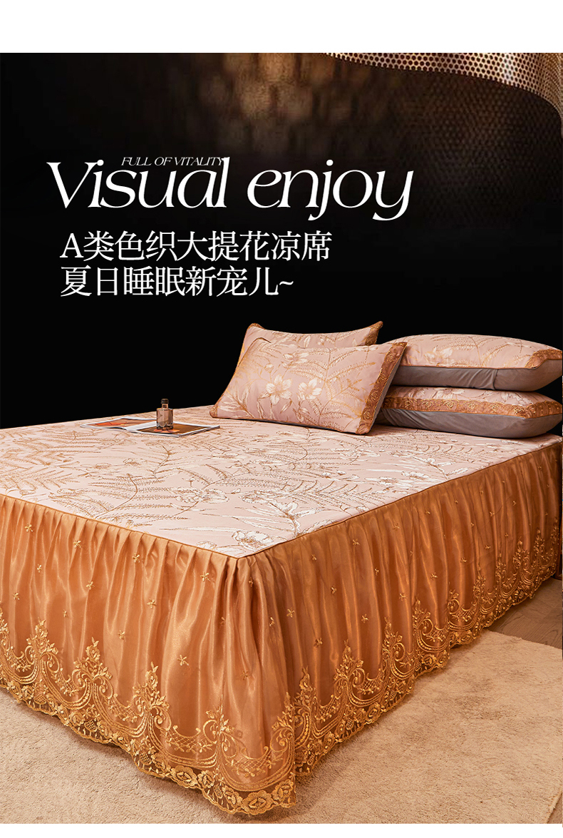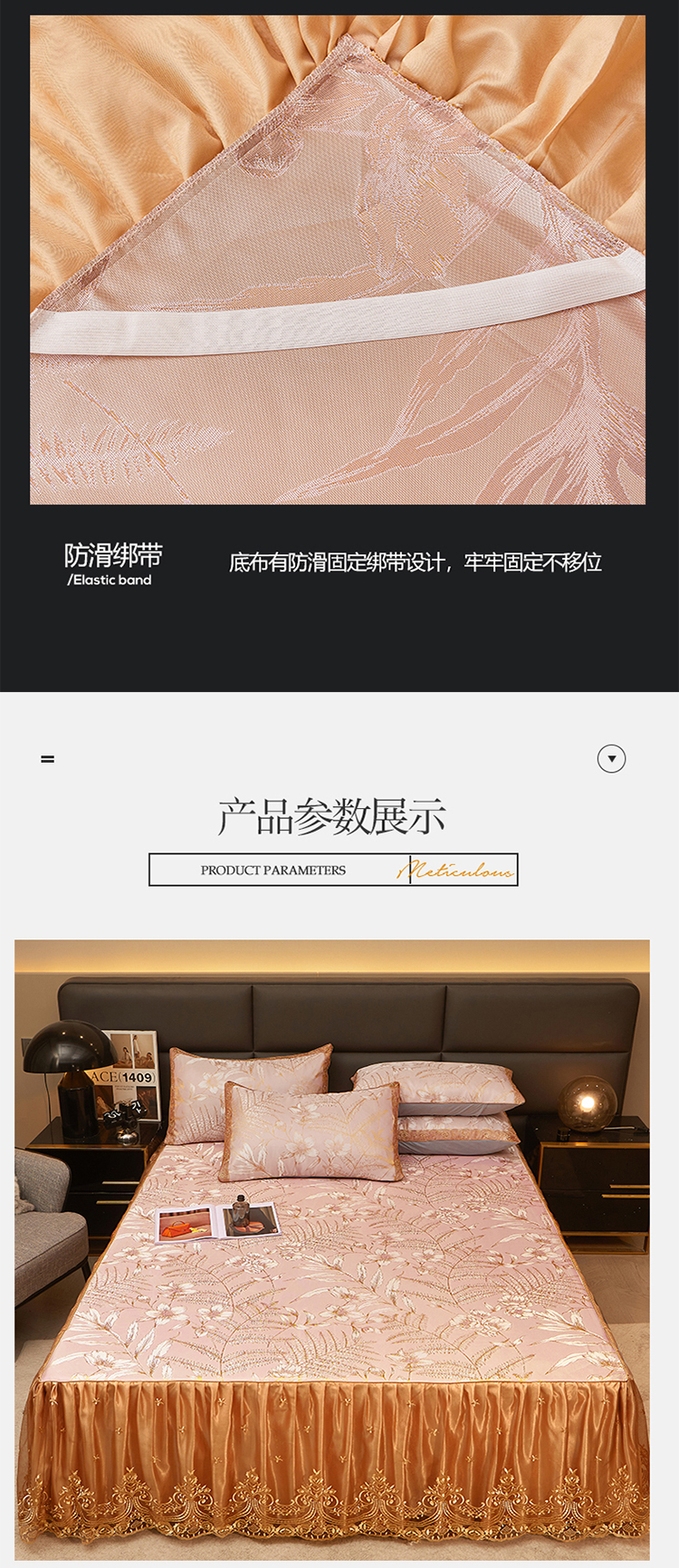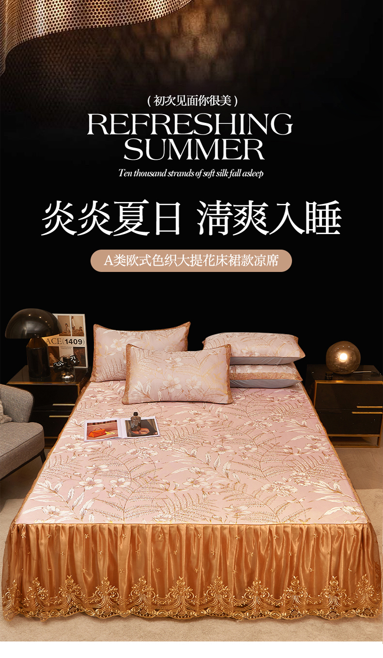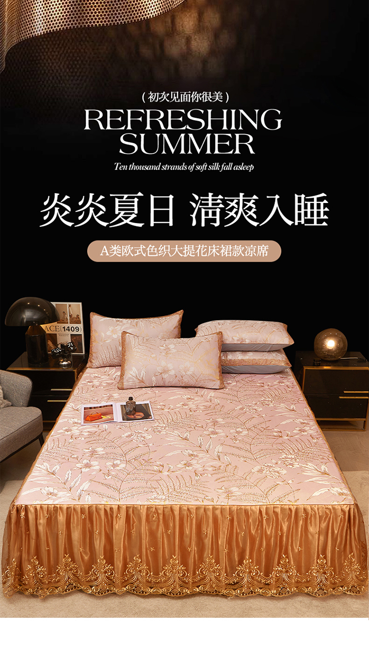 商品名称:罗艺轩 2024新款欧式色织大提花床裙凉席 春语