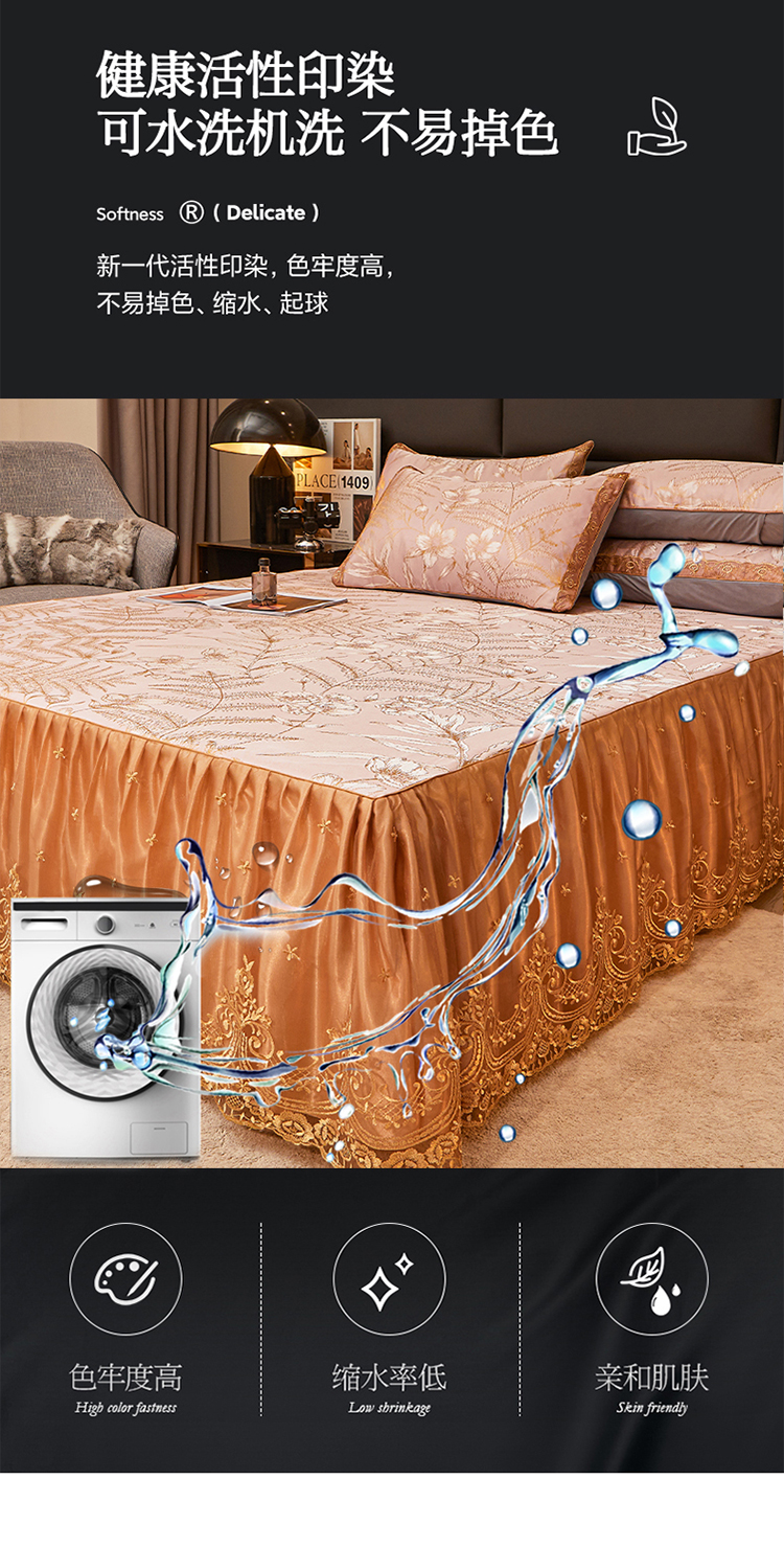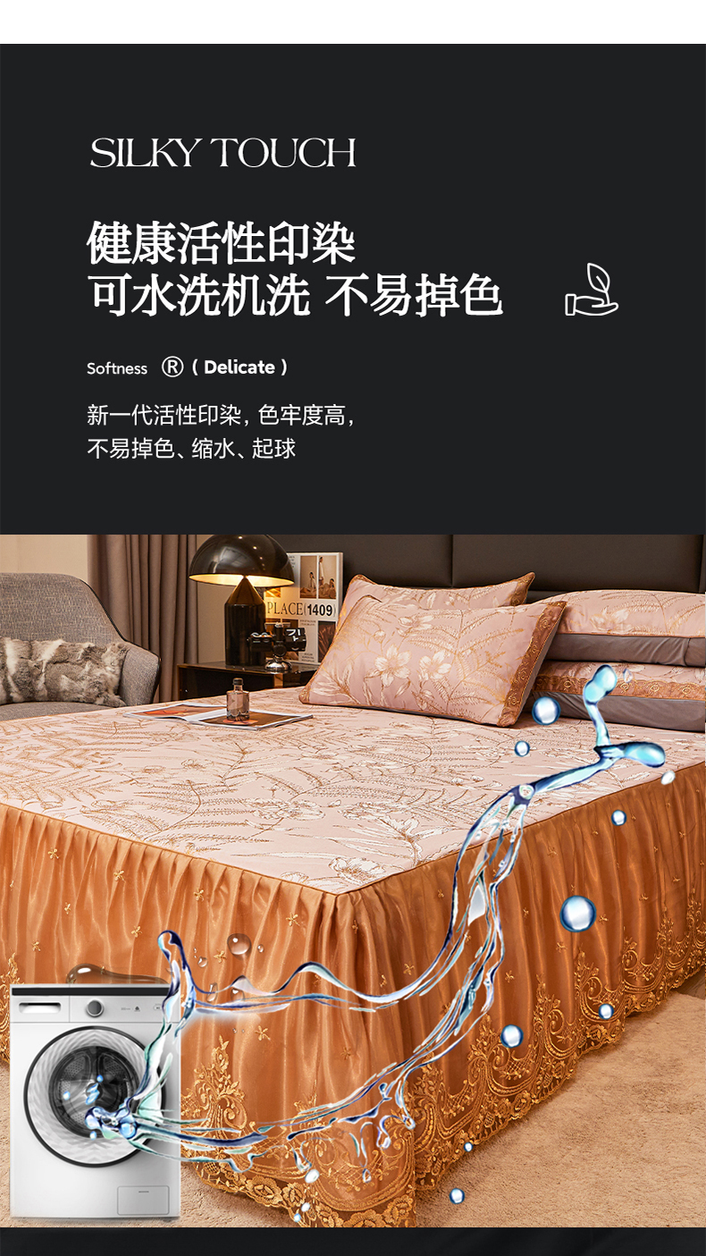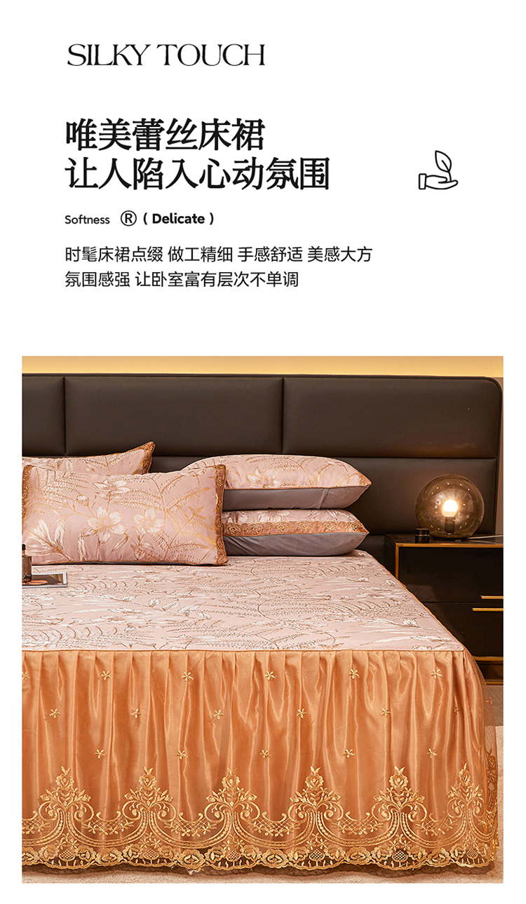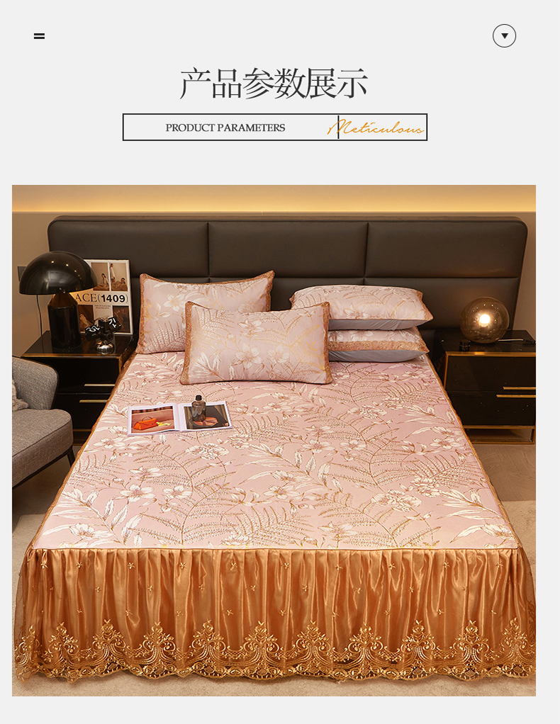商品名称:罗艺轩 2024新款欧式色织大提花床裙凉席 春语