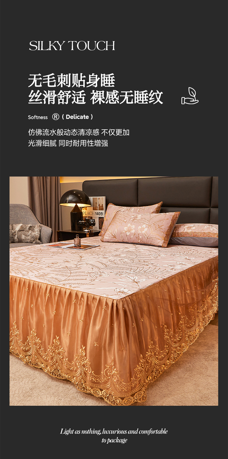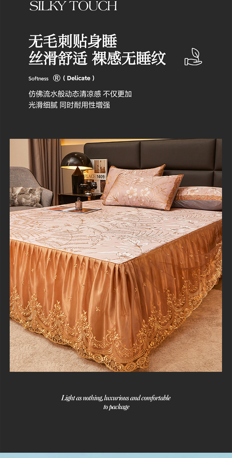 罗艺轩 2024新款欧式色织大提花床裙凉席 春语