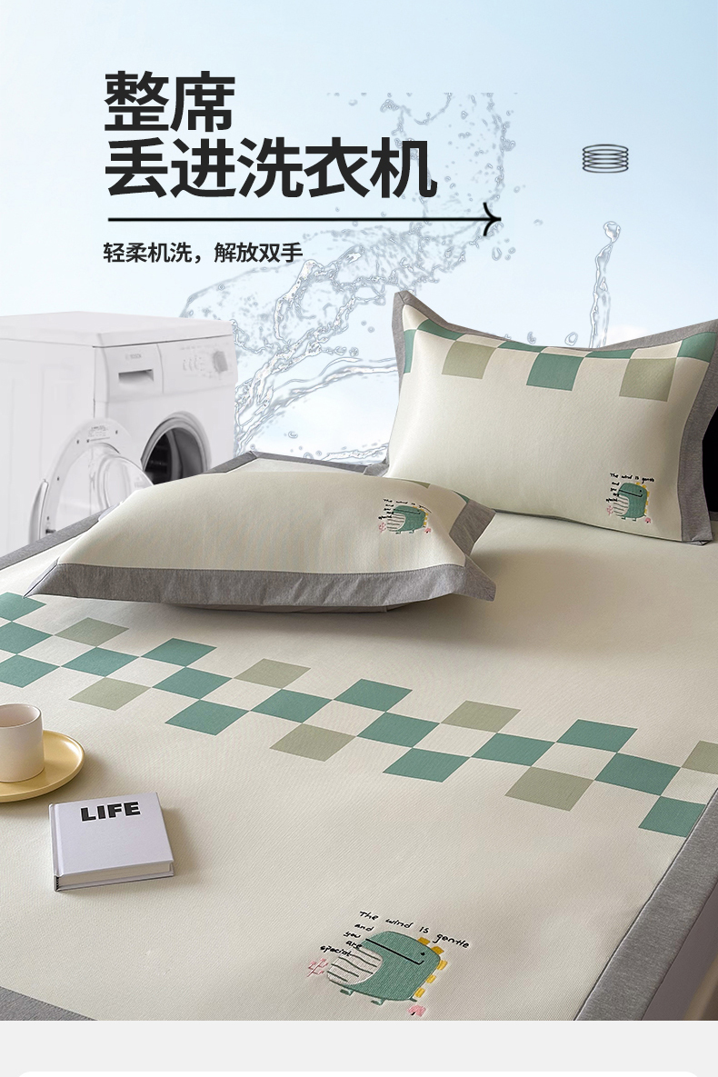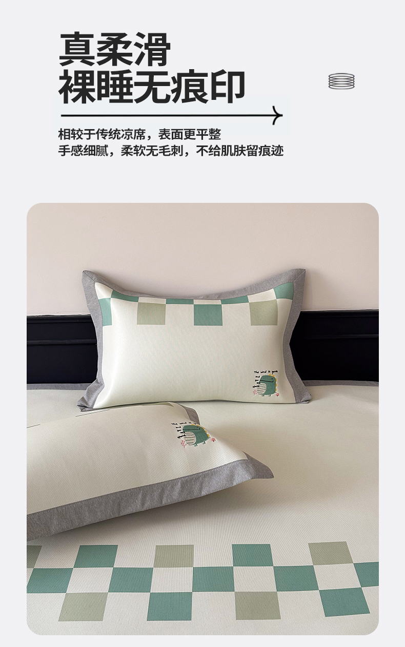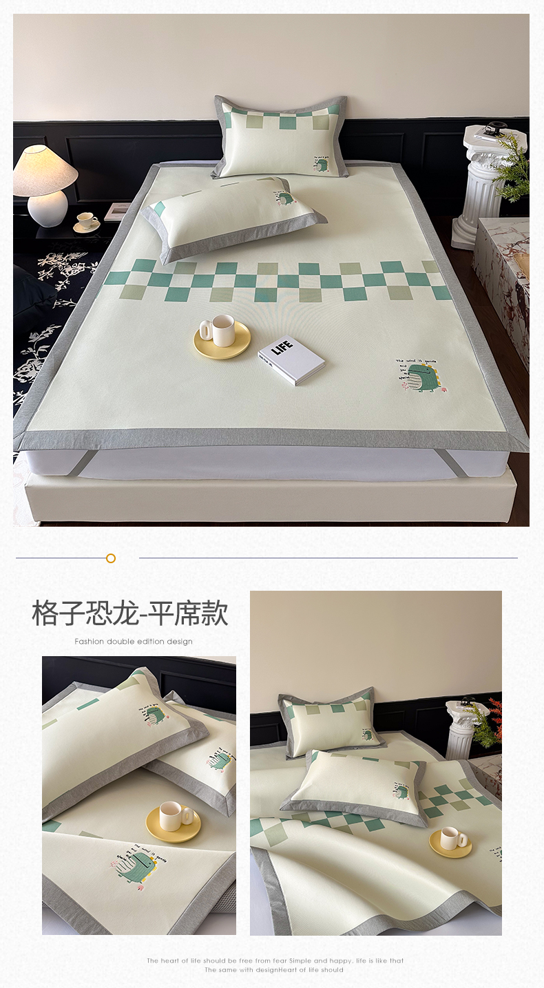 商品名称:甜梦 2024新款母婴级7A抗菌养生冰藤席影棚1—平席款 格子恐龙-平席款