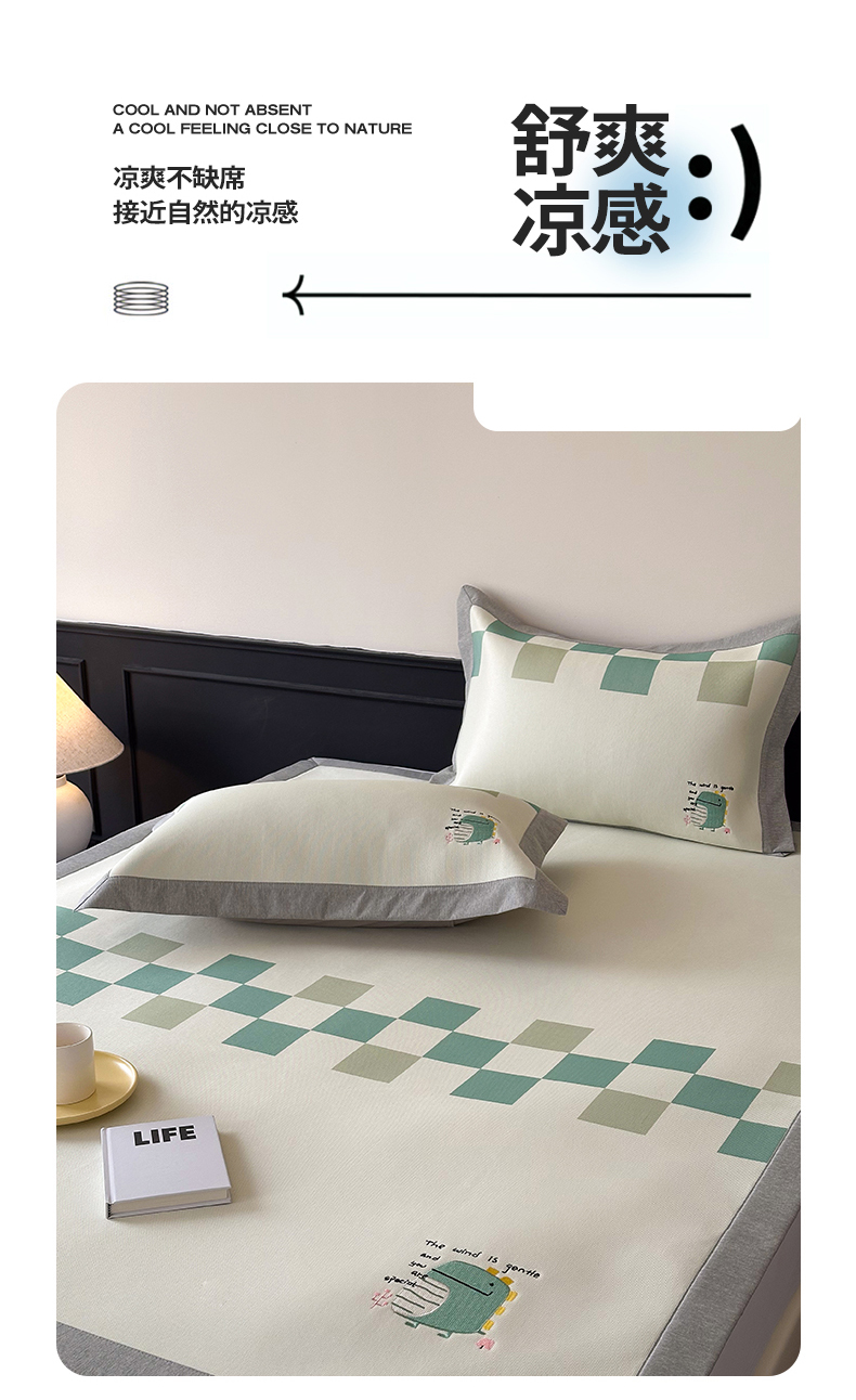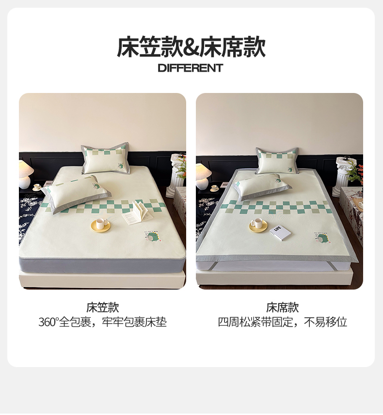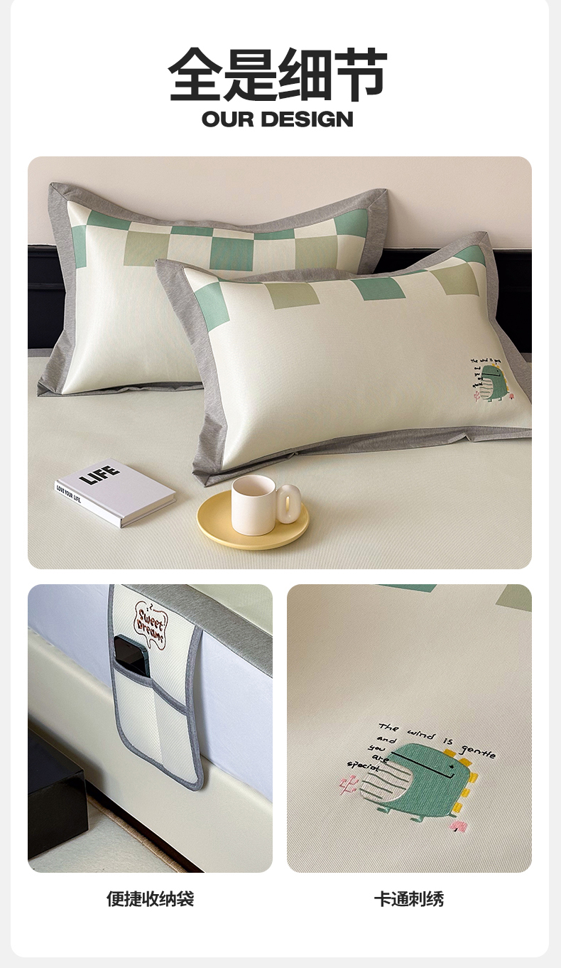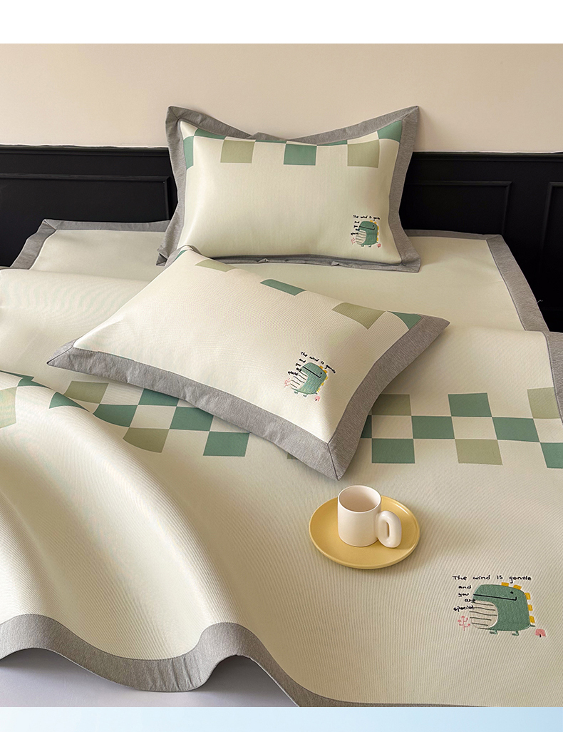 商品名称:甜梦 2024新款母婴级7A抗菌养生冰藤席影棚1—平席款 格子恐龙-平席款