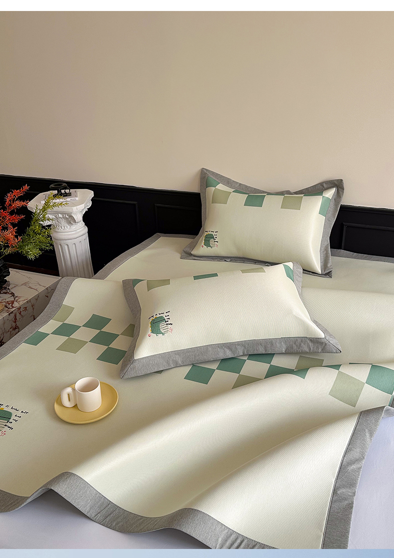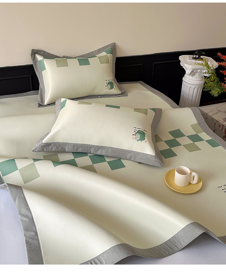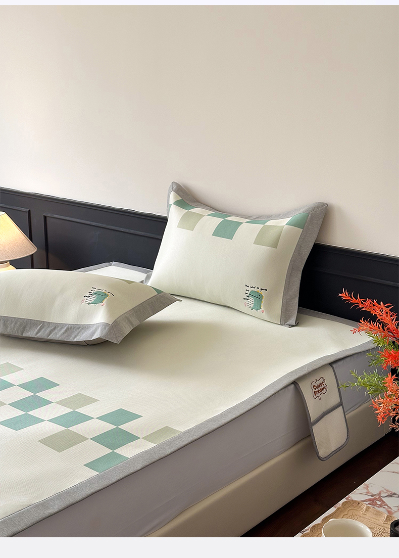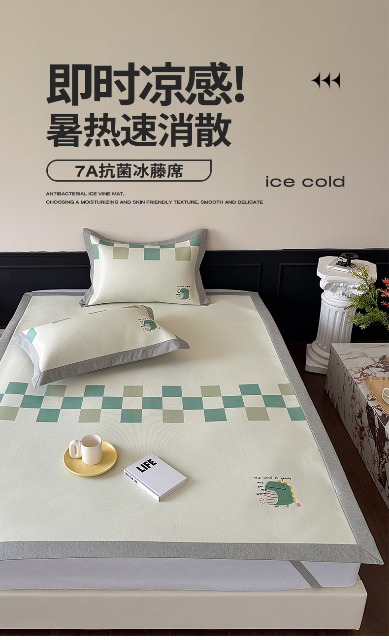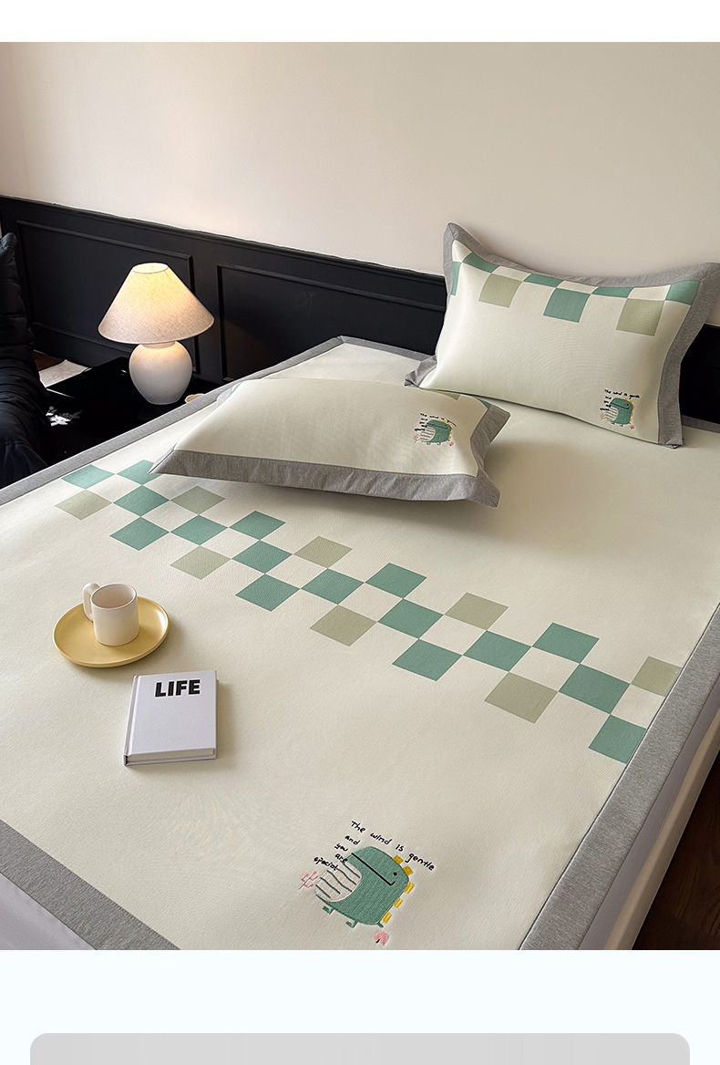 甜梦 2024新款母婴级7A抗菌养生冰藤席影棚1—平席款 格子恐龙-平席款