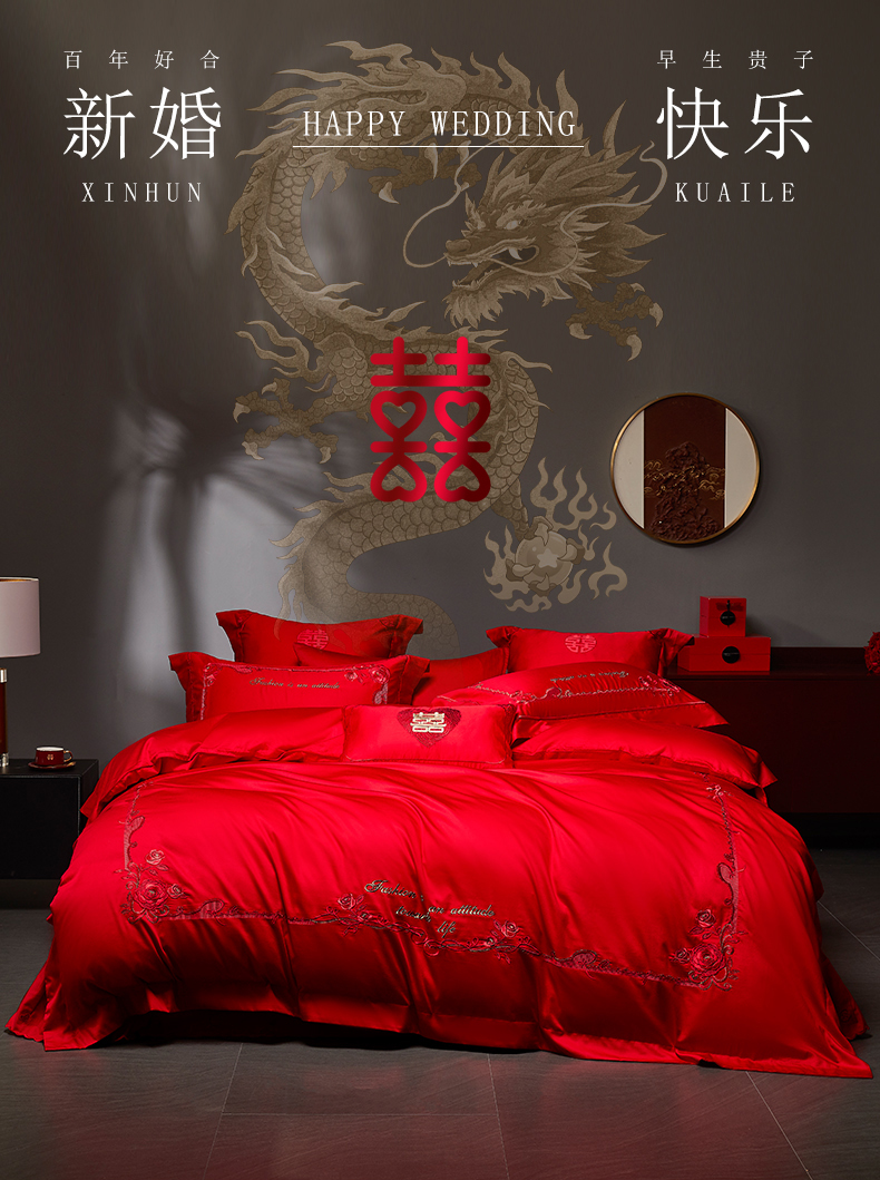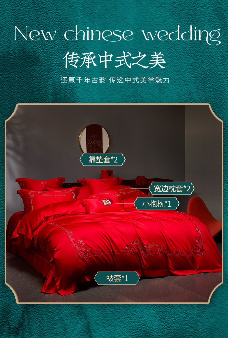 当前位置: 91家纺网 > 商品网购 > 床品套件 > 四件套 > 婚庆四件套 > 高大尚婚庆馆 2025新款60s长绒棉轻奢(床裙款)婚庆四件套 真爱相随(红)