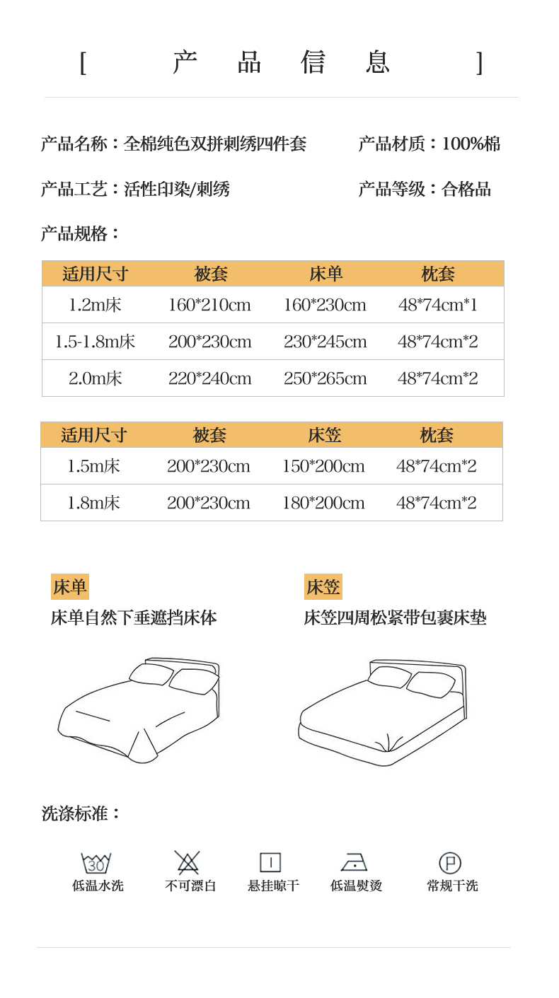 商品名称:多品家纺 2024新款全棉纯色双拼刺绣四件套 奶白宝石蓝