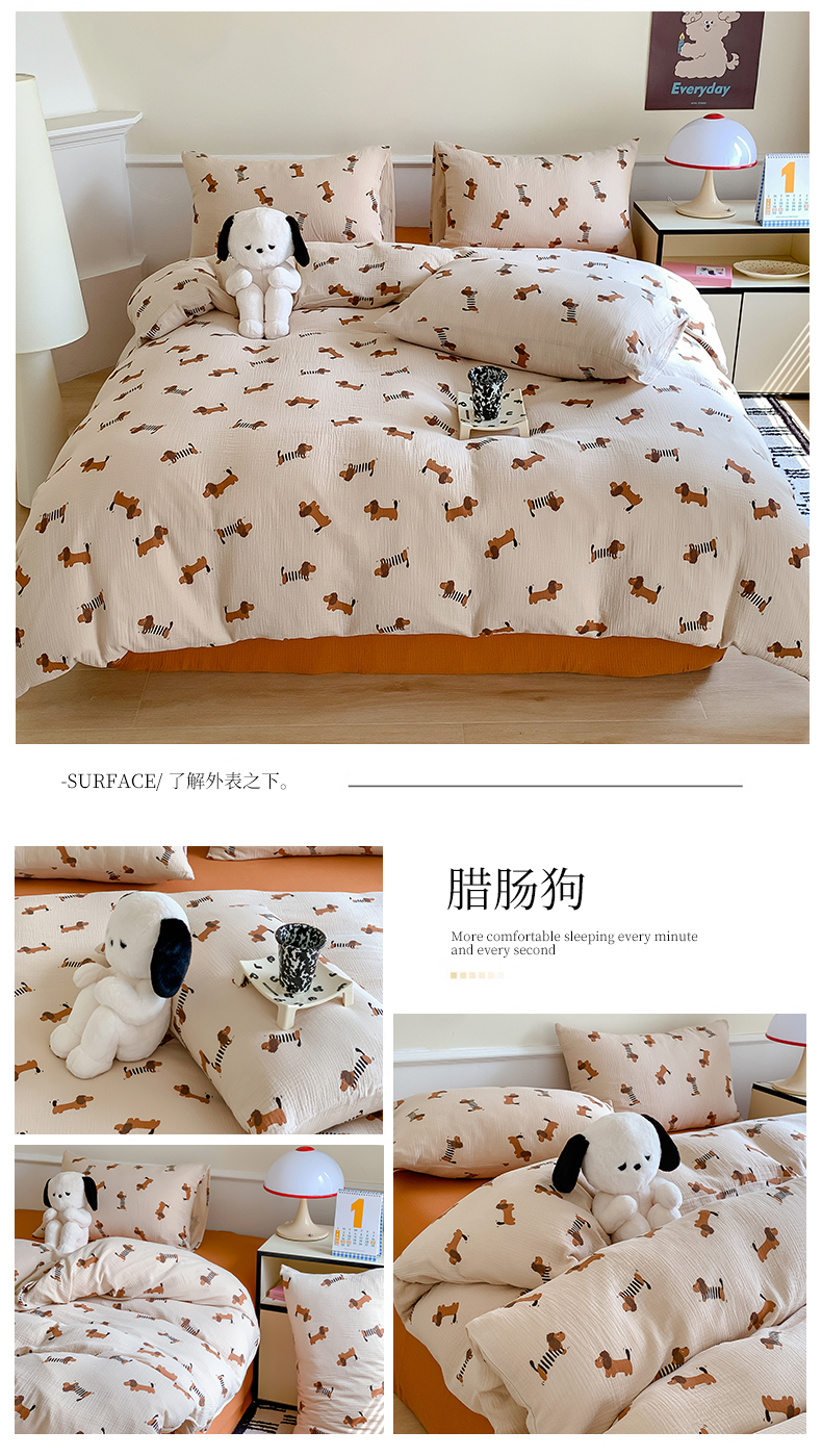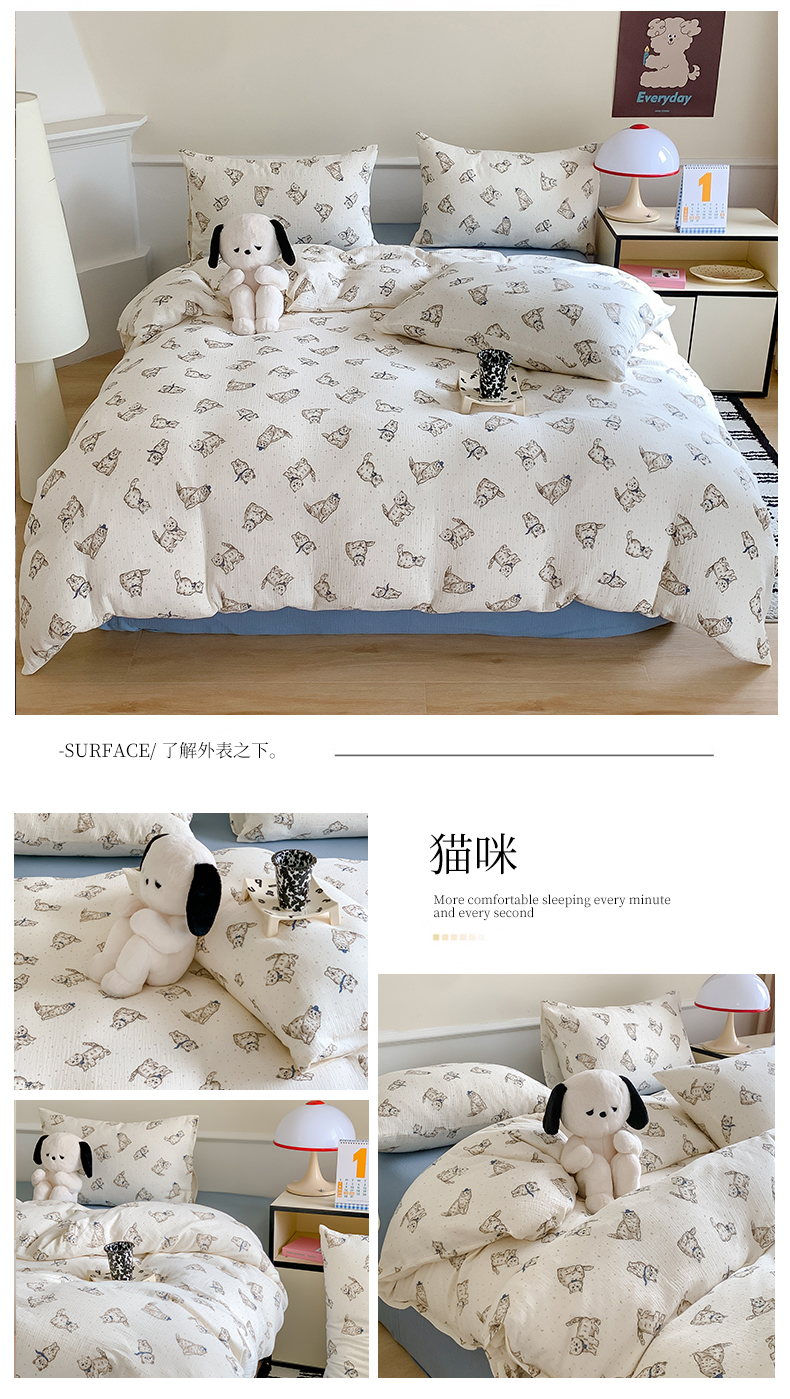 (总)萝莉家纺 2025新款全棉小清新高品质数码印花磨毛四件套,斑点狗狗,波点草莓,多彩草莓,美味蛋糕,甜品熊,涂鸦日记,熊熊日记,英伦熊,樱桃多多,组合