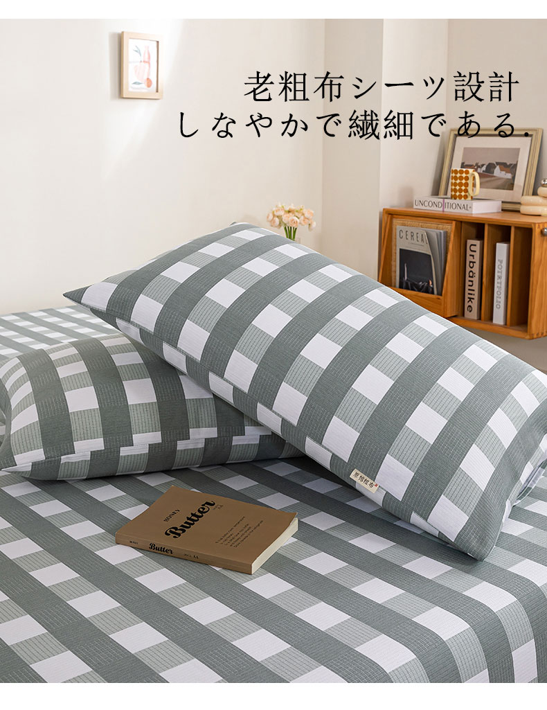 鸣升 新款舒适透气100%全棉老粗布枕套 灰中格